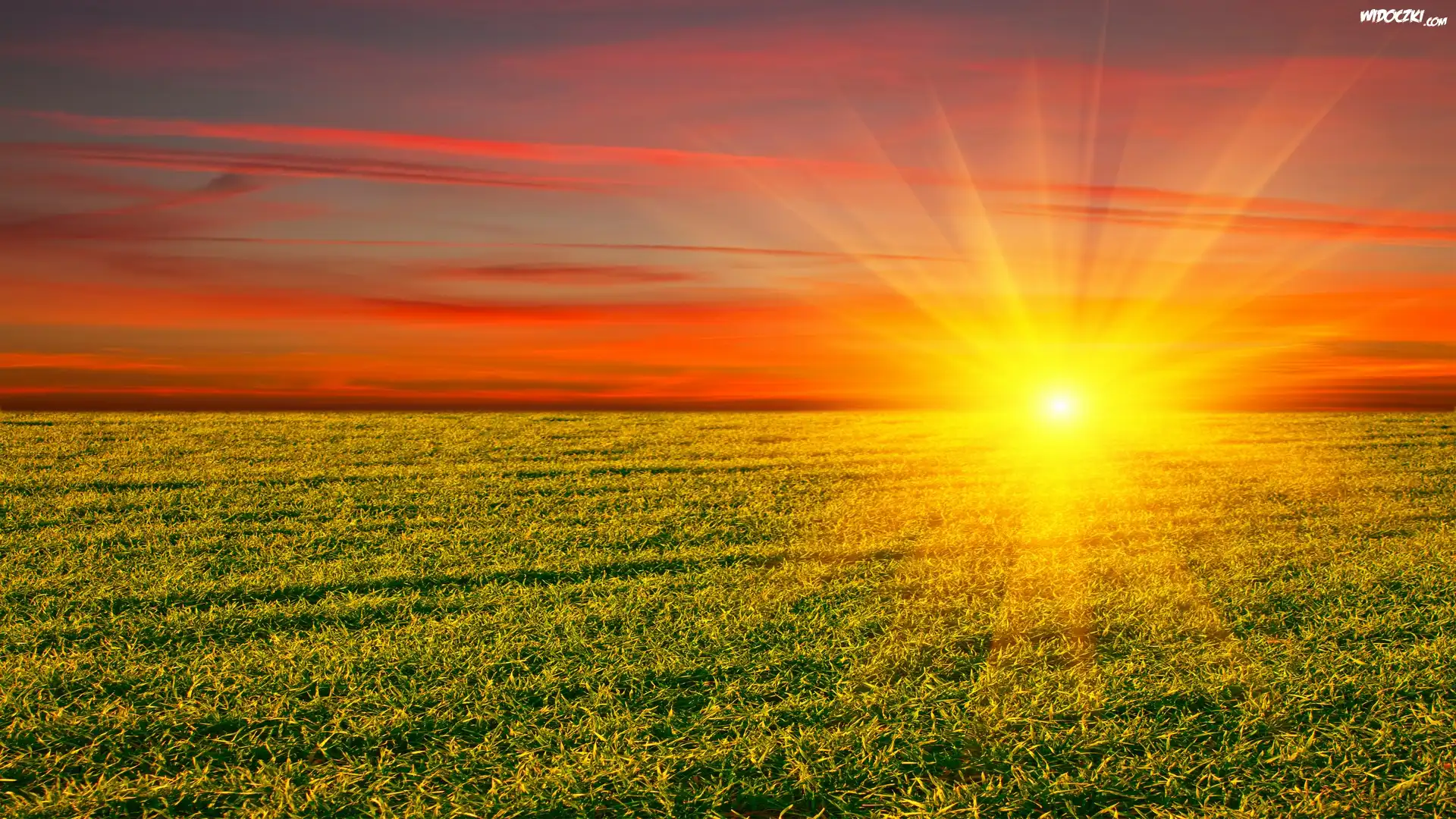 Zdjęcia, Zachód, Słońca, Promienie, Zielone, Pole
