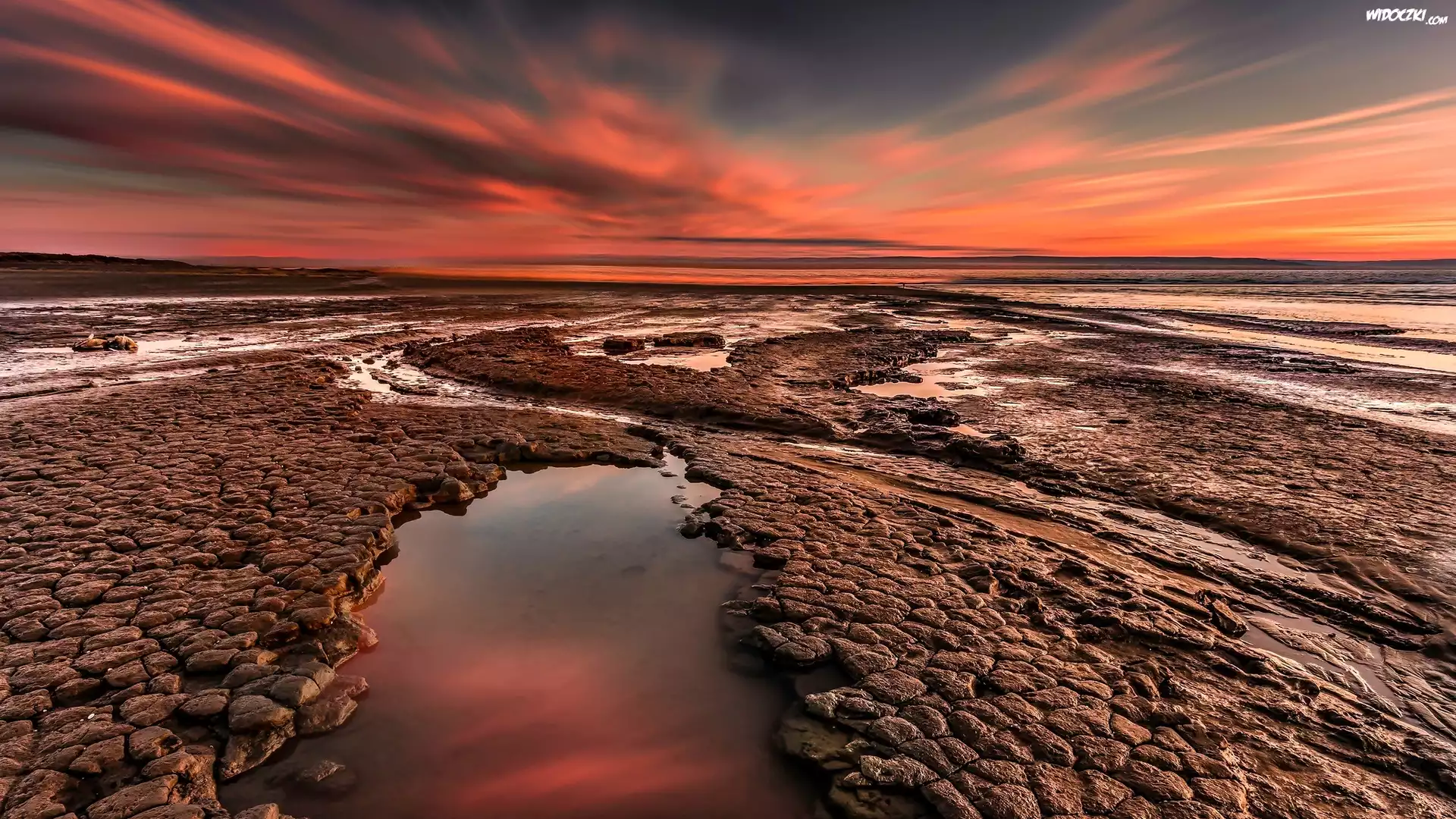 Zdjęcia, Zachody słońca, Skały, Morze, Wybrzeże