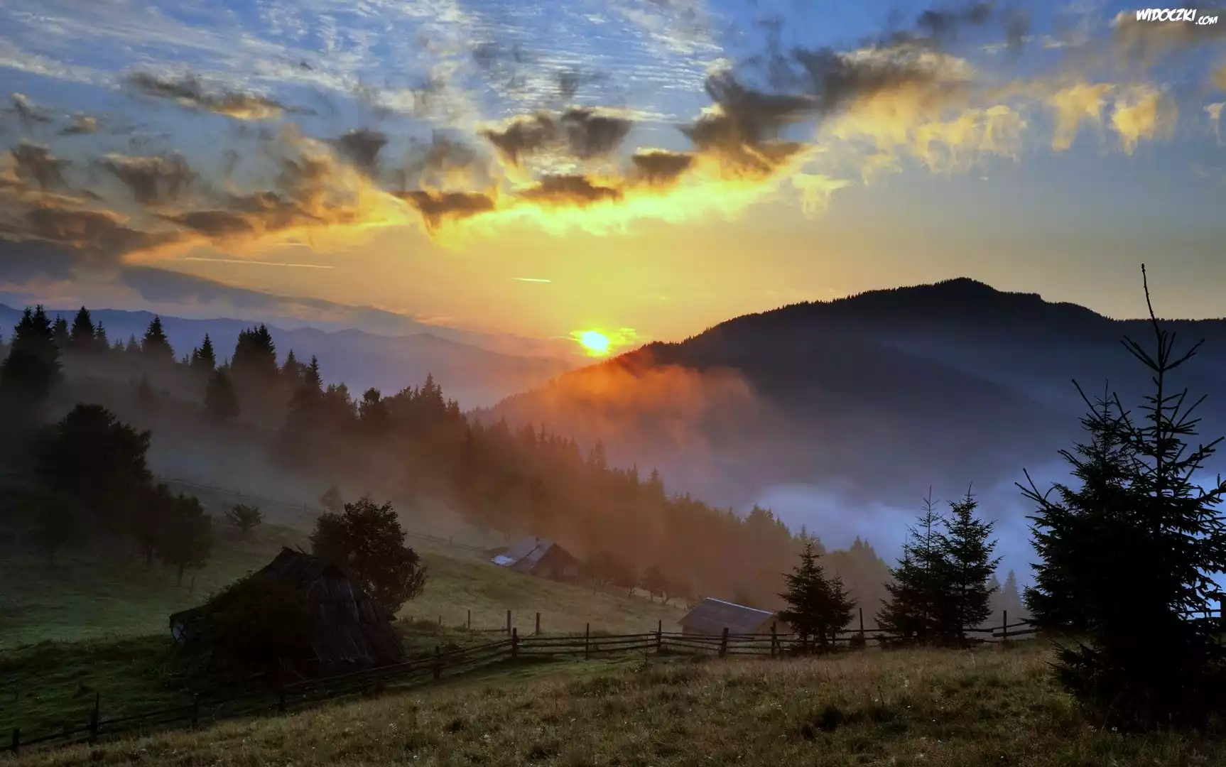 Zdjęcia, Zachodzące, Słońce, W, Górach, Łąki