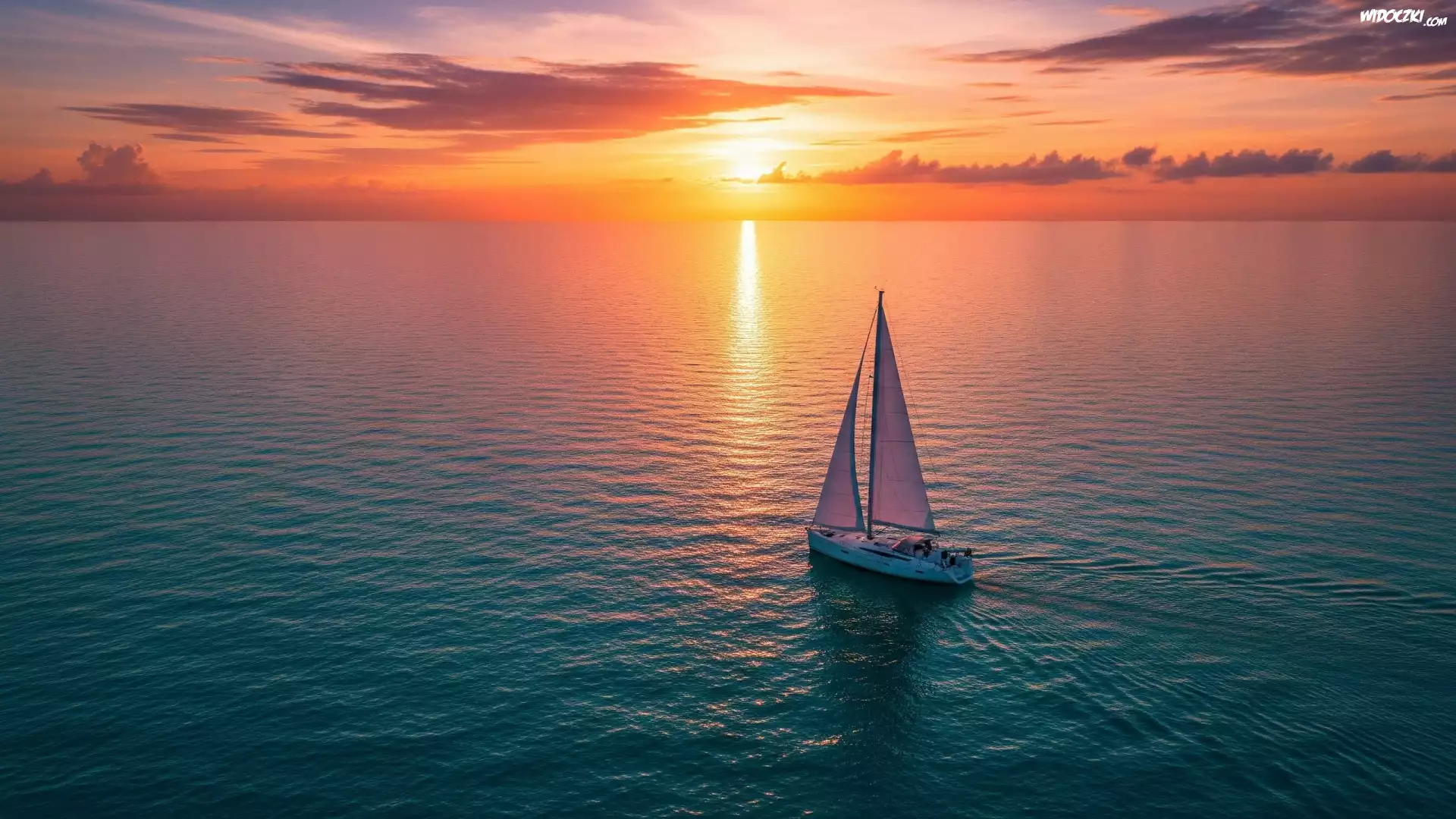 Zachód słońca, Morze, Żaglówka