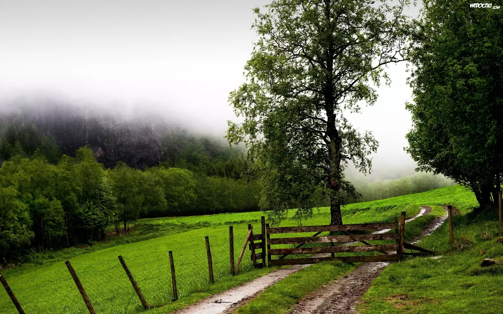 Łąka, Ścieżka, Zagroda, Drzewa