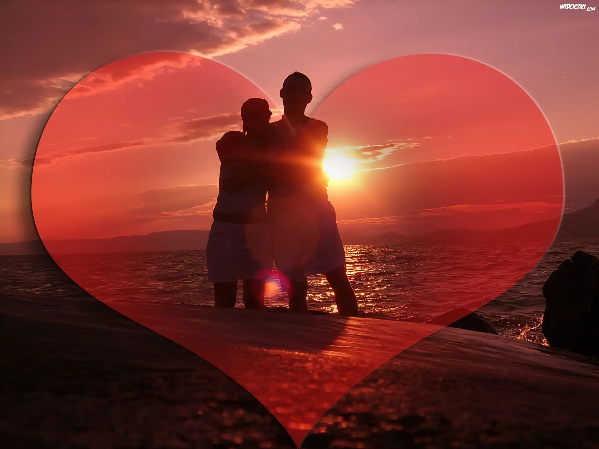 Zdjęcia, Zakochana, Para, Morze, Czerwone, Serce