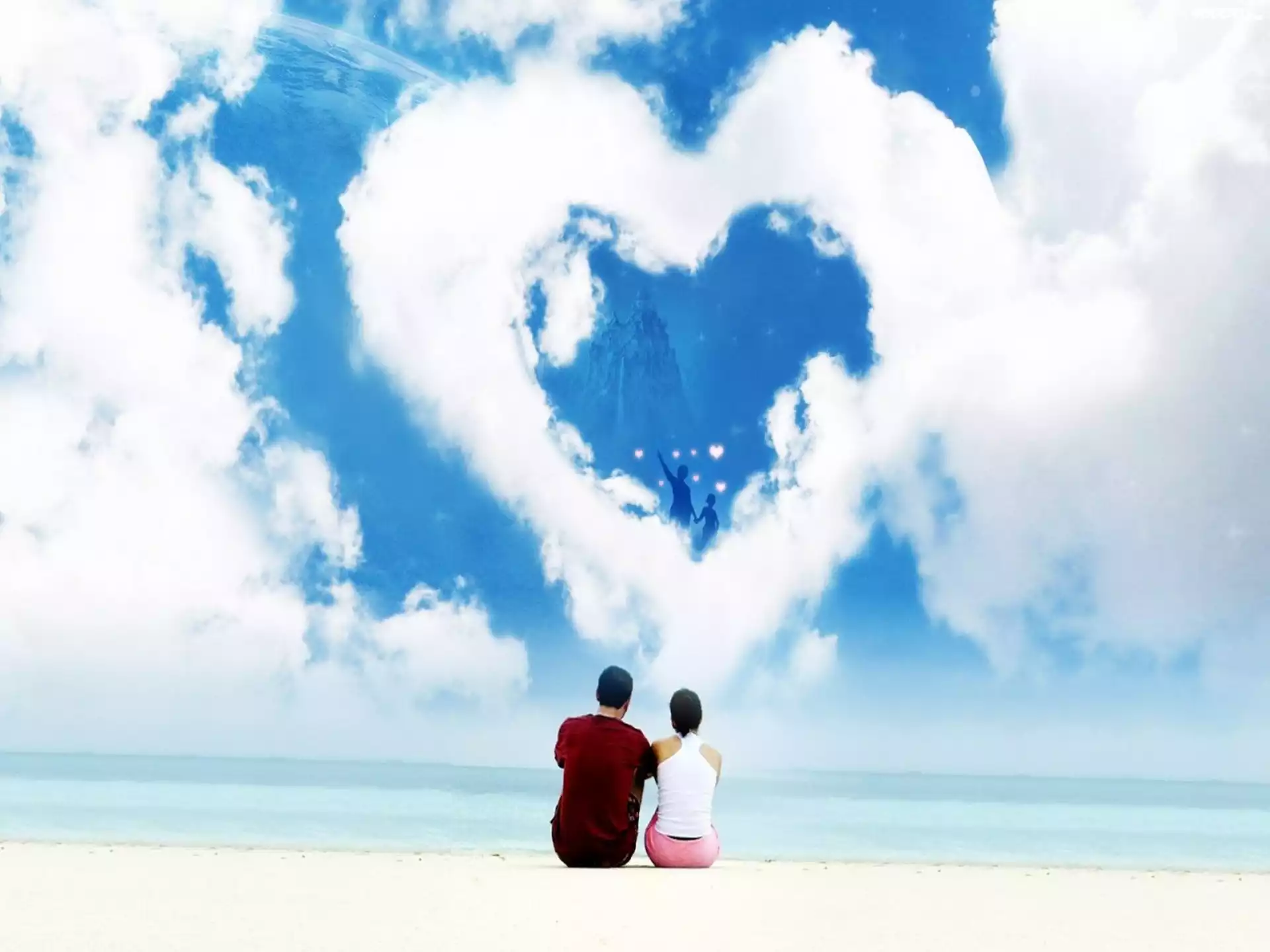 Zdjęcia, Zakochana, Para, Niebo, Chmury, Kształt, Serca