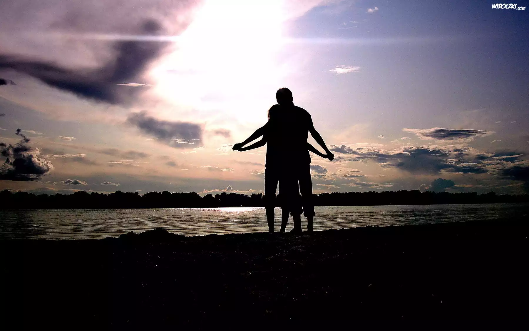Zdjęcia, Zakochani, Postaci, Jezioro, Zachód, Słońca