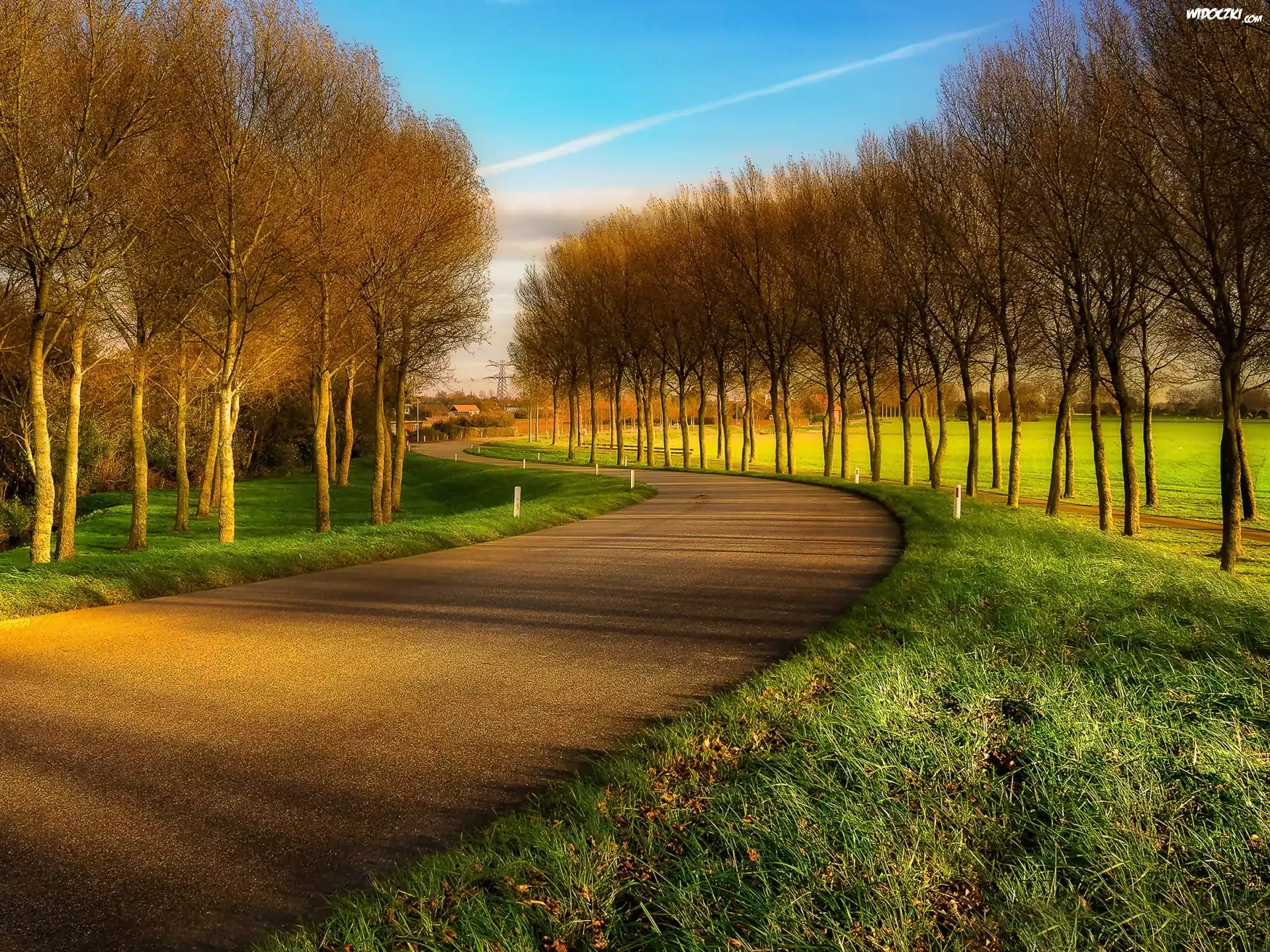 Zdjęcia, Droga, Zakręt, Drzewa