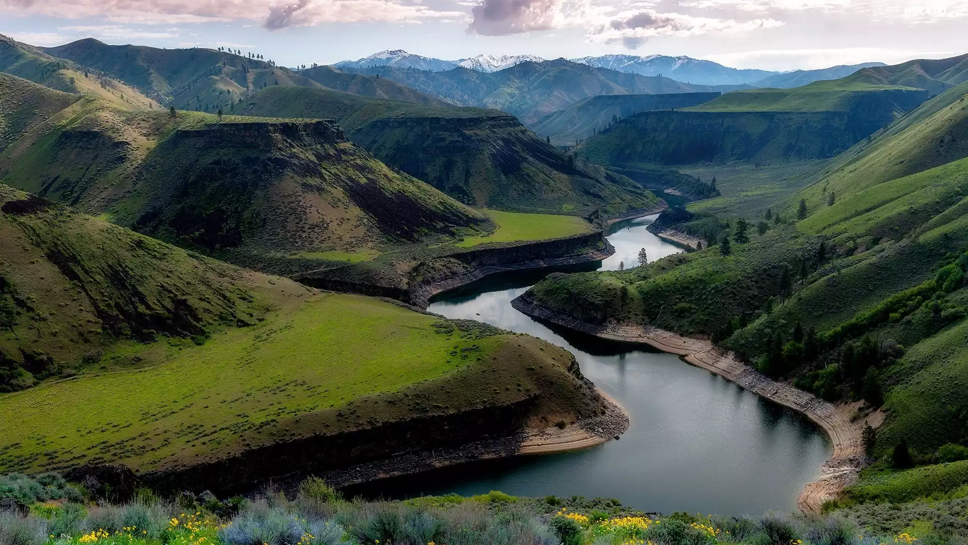 Zalesione, Góry Skaliste, Rzeka, Boise River, Idaho, Stany Zjednoczone