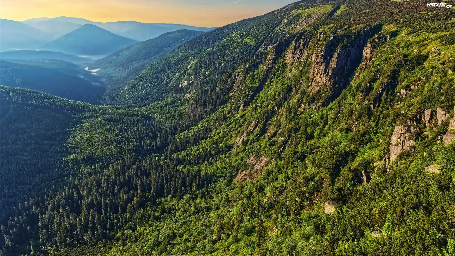 Zdjęcia, Zalesione, Góry, Karkonosze, Lasy, Dolina, Polska
