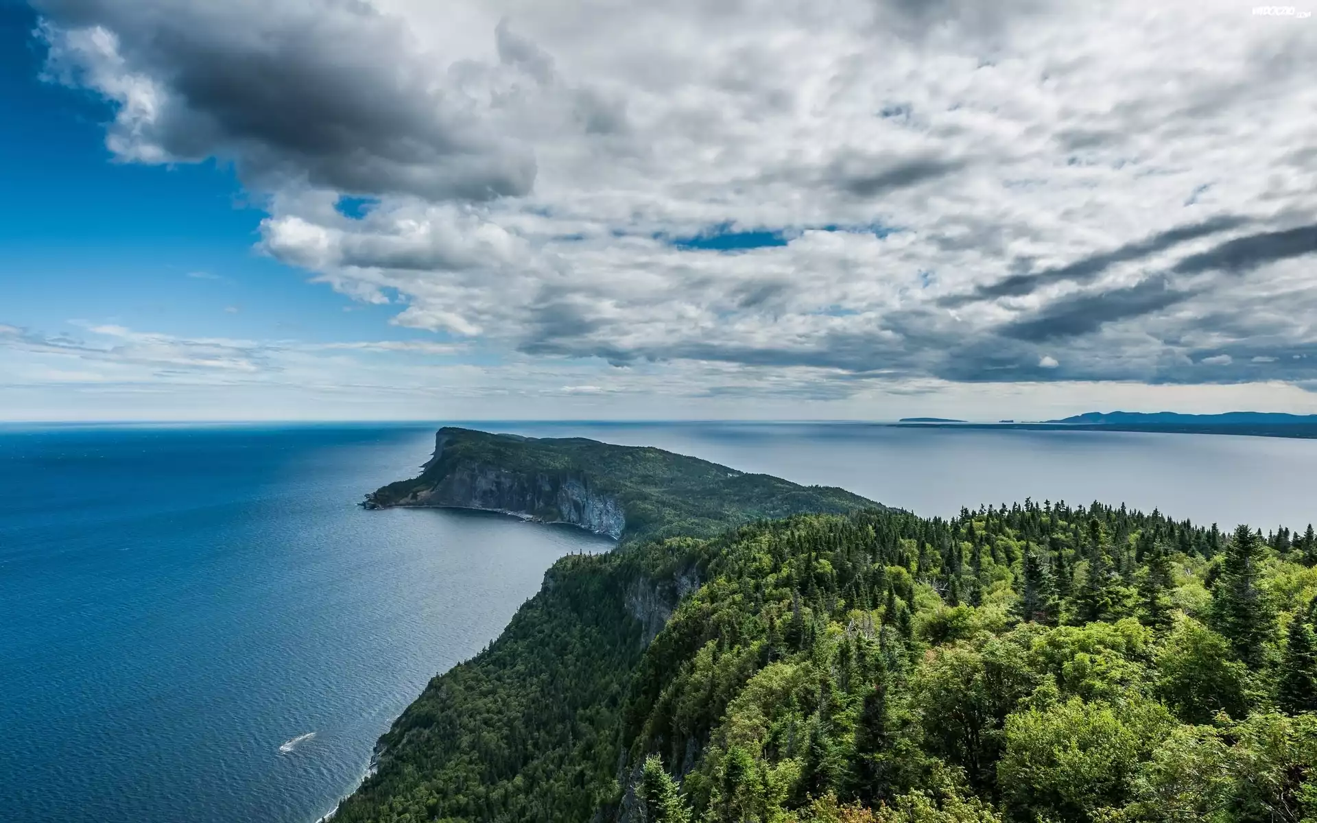Zalesione, Wybrzeże, Półwysep, Pochmurne, Niebo