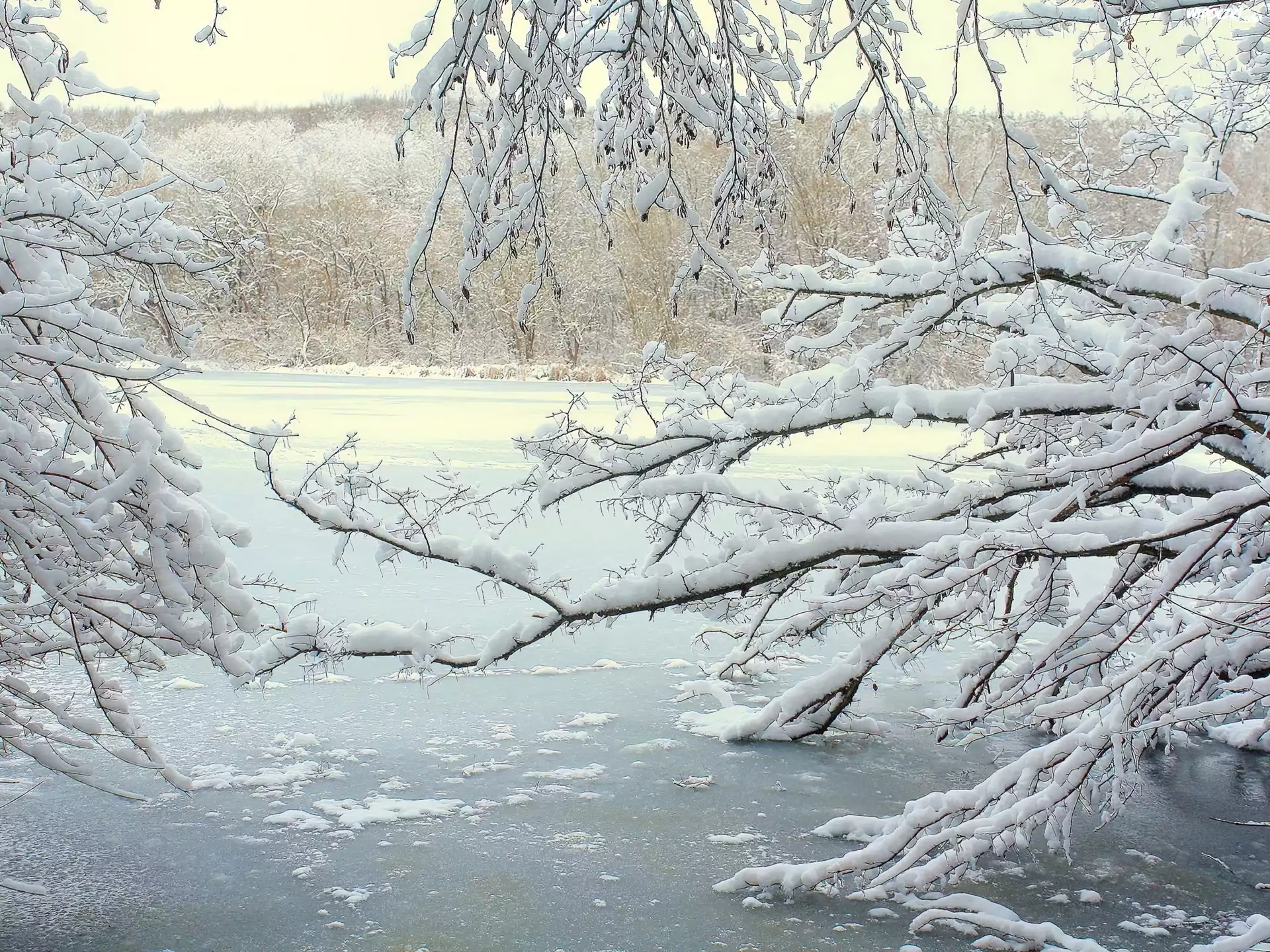 Zdjęcia, Zamarznięta, Rzeka, Gałęzie, Drzew
