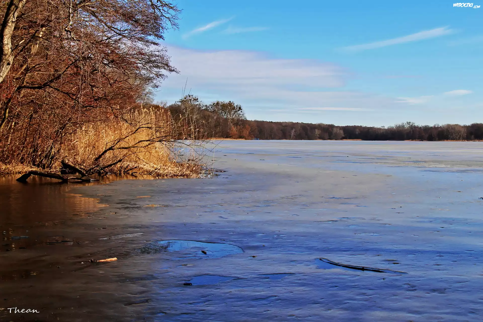 Zdjęcia, Zamarznięte, Jezioro, Błękitne, Niebo