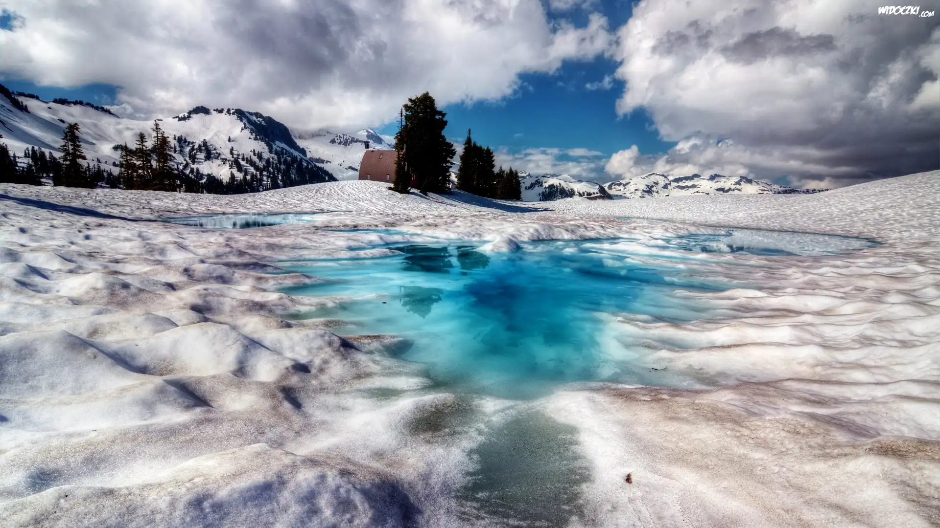Zdjęcia, Zamarznięte, Jeziora, Chmury, Zima