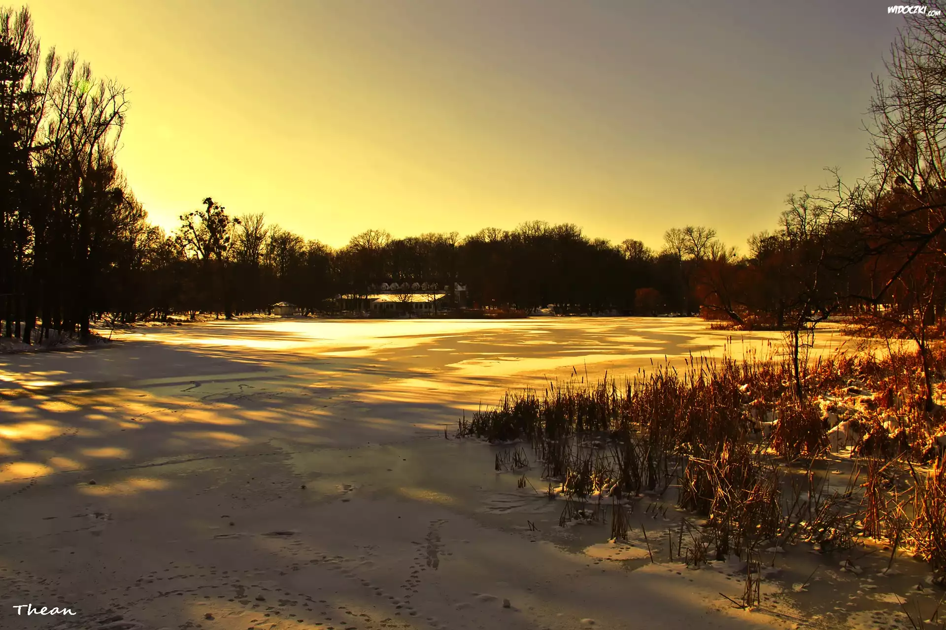 Zamarznięte, Jezioro, Zima, Drzewa