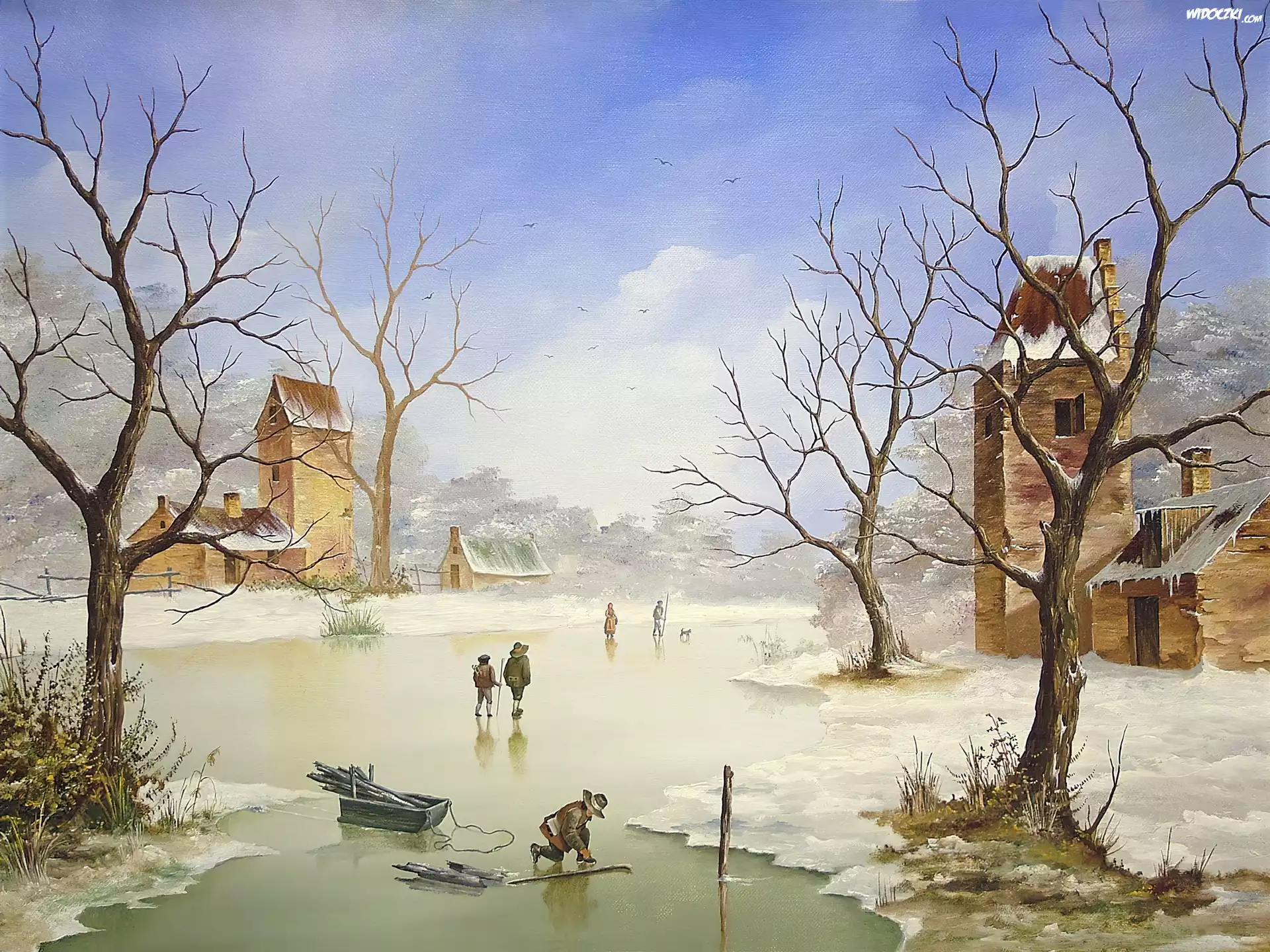 Zamarznięte, Jezioro, Staw, Zima, Drzewa