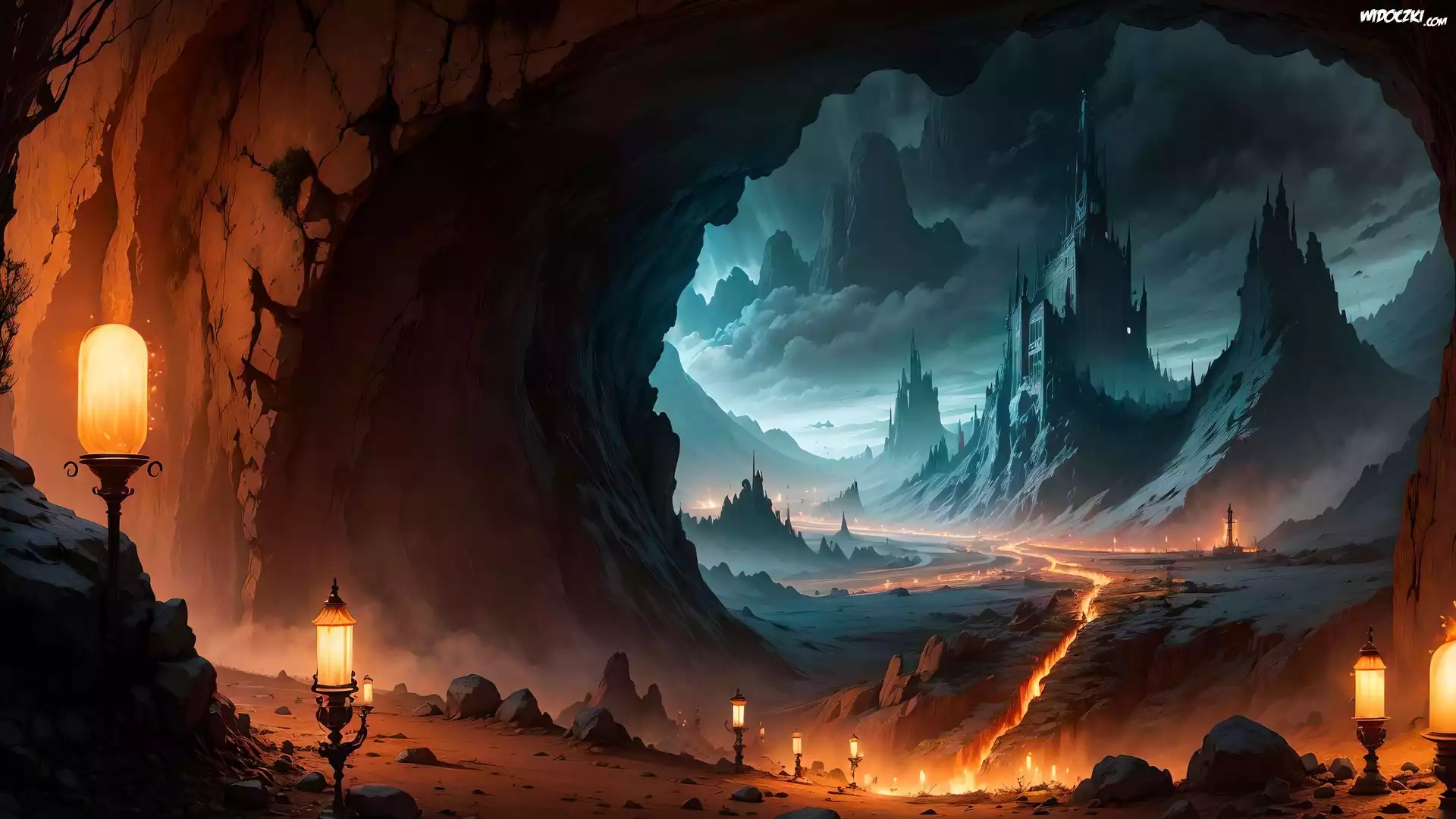 Jaskinia, Oświetlenie, Lampy, Zamek, Góry, Fantasy