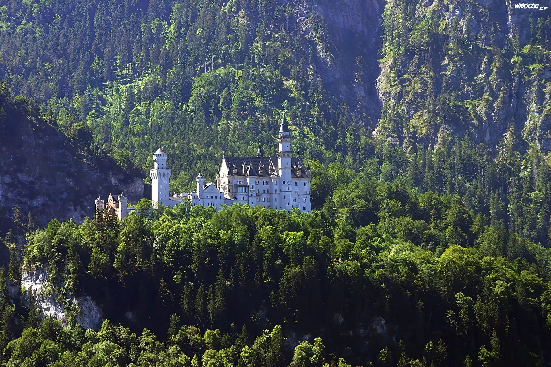 Zdjęcia, Zamek, Neuschwanstein, Lasy, Góry, Niemcy