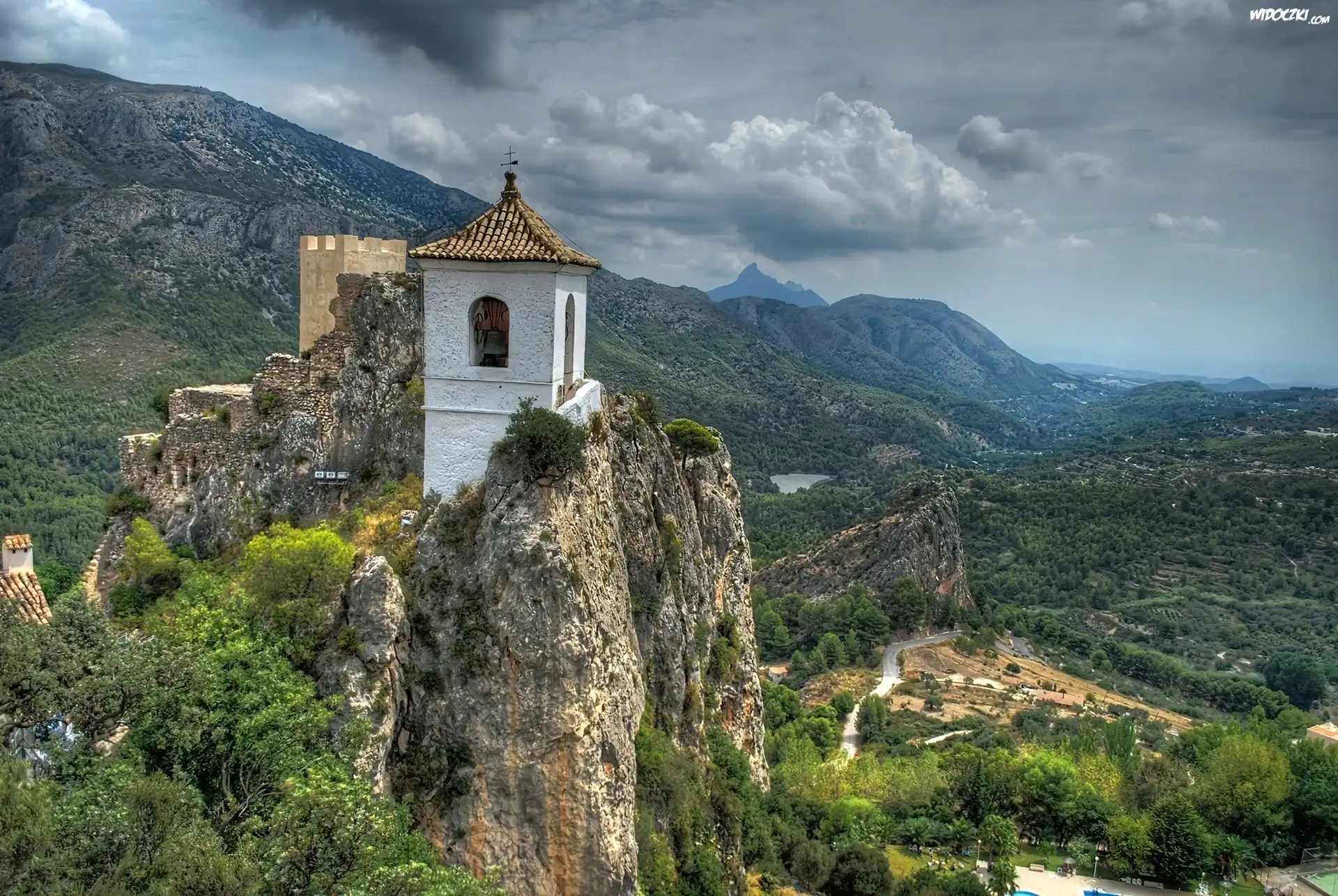 Skała Góra Latarnia morska, Skała Góra, Skały Niebo, Morze, Skały Wodospad, Zbocze, Góry Góra Skaliste, Wybrzeże Skały, Drzewka, Morze Skała, Morze Wielkie, Skały, Zielona, Łąka, Drzewa Dziwna Góra Skały Rwąca, Rzeka, Kaskady, Krajobraz