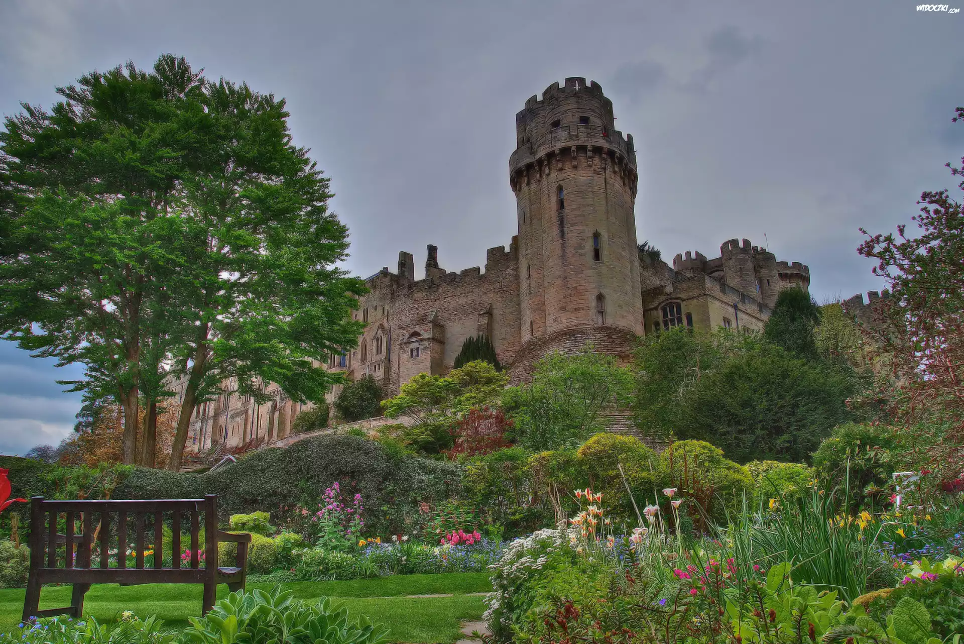 Zdjęcia, Zamek w Warwick, Anglia, Ławka, Ogród