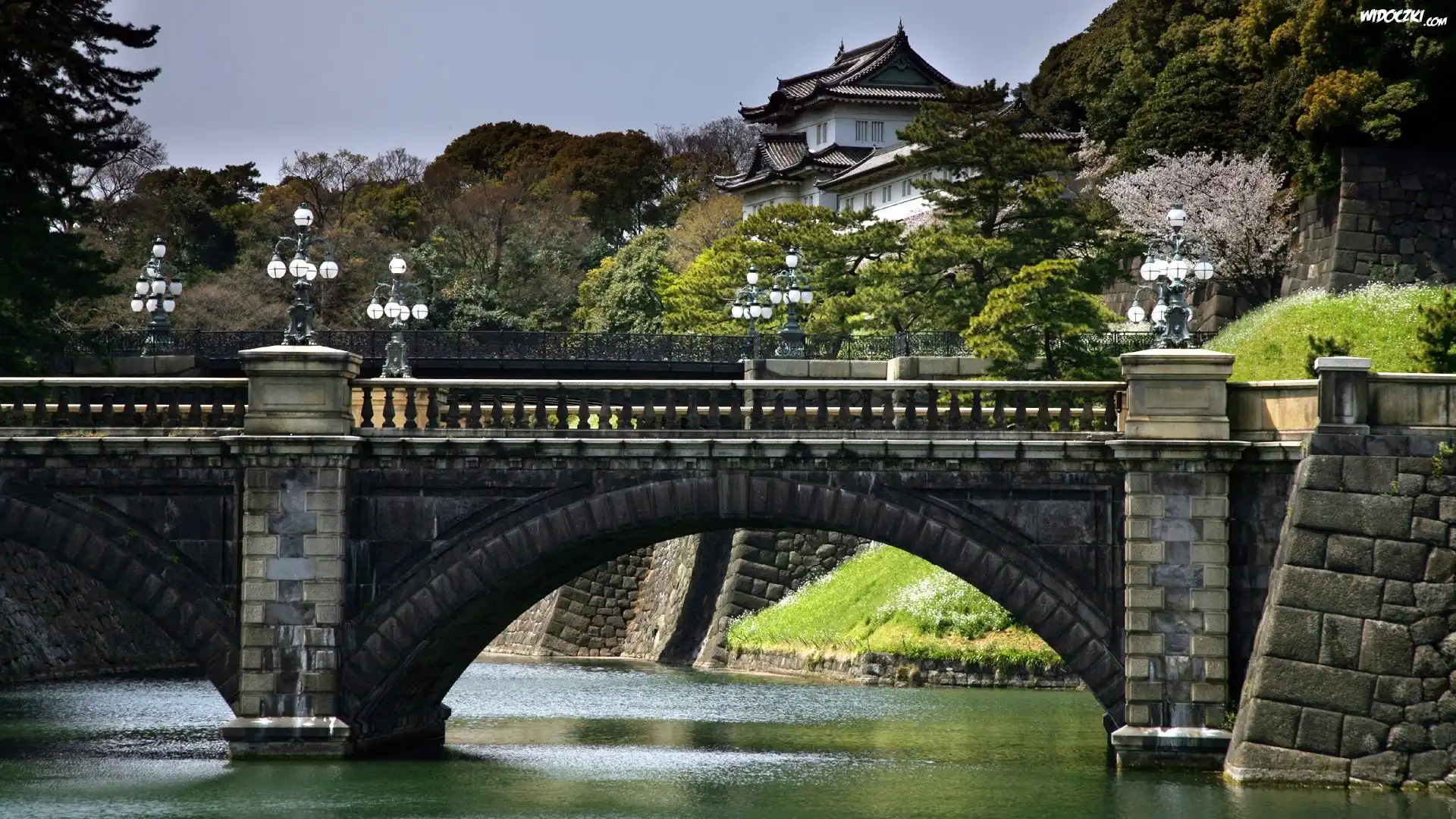 Zdjęcia, Zamek, Most, Rzeka, Japonia