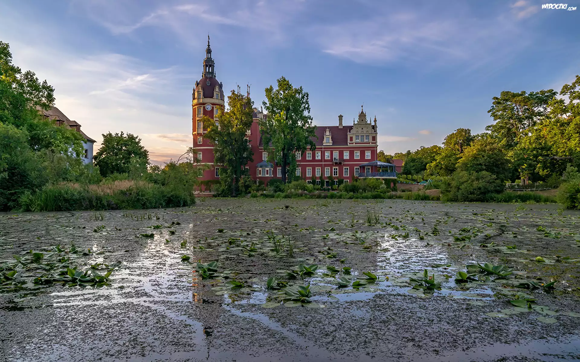 Zdjęcia, Zamek, Schloss Muskau, Zamek w Mużakowie, Jezioro, Mużaków, Saksonia, Niemcy