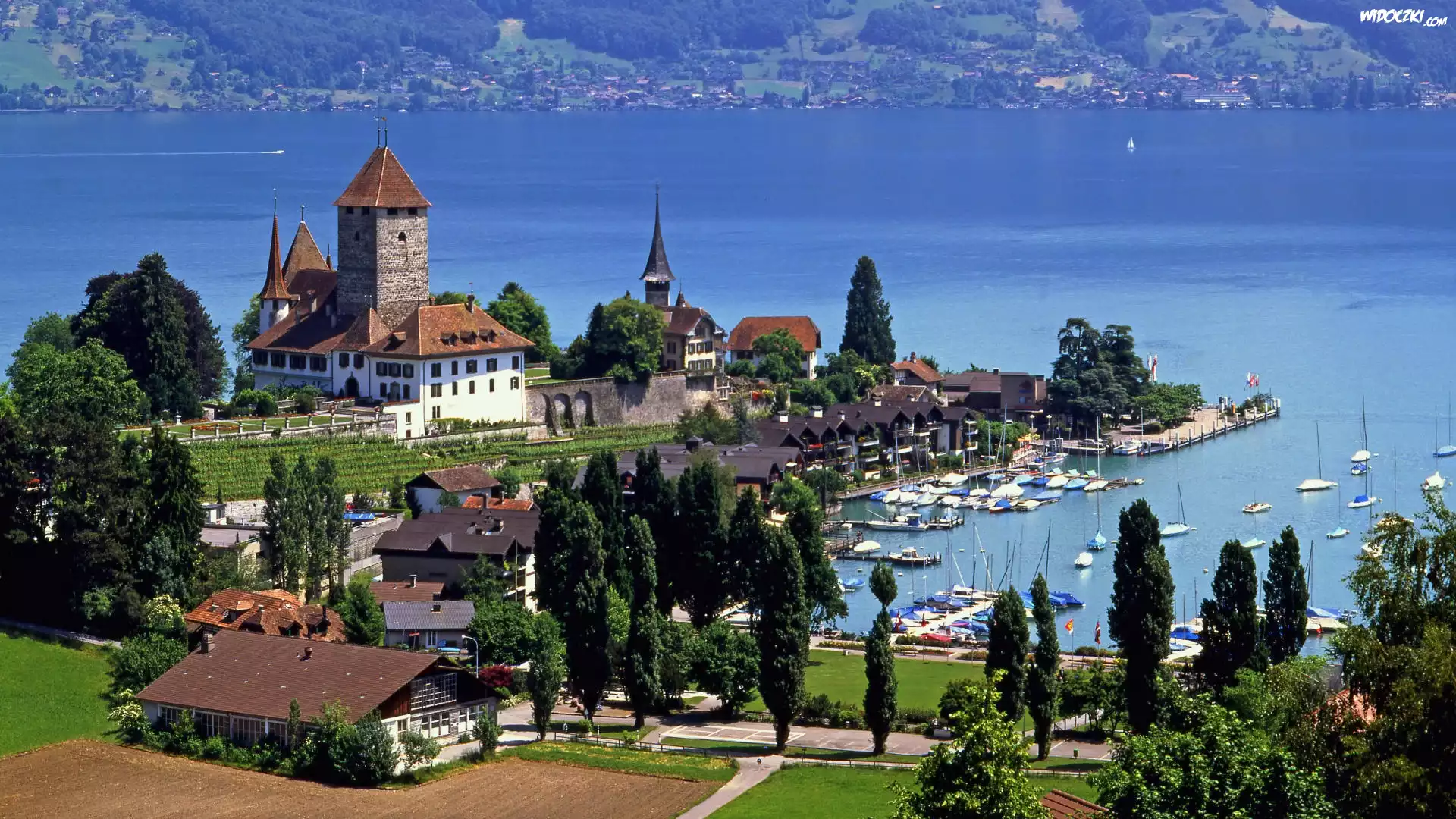 Zdjęcia, Zamek Spiez Castle, Miasto Spiez, Jezioro Thun, Szwajcaria
