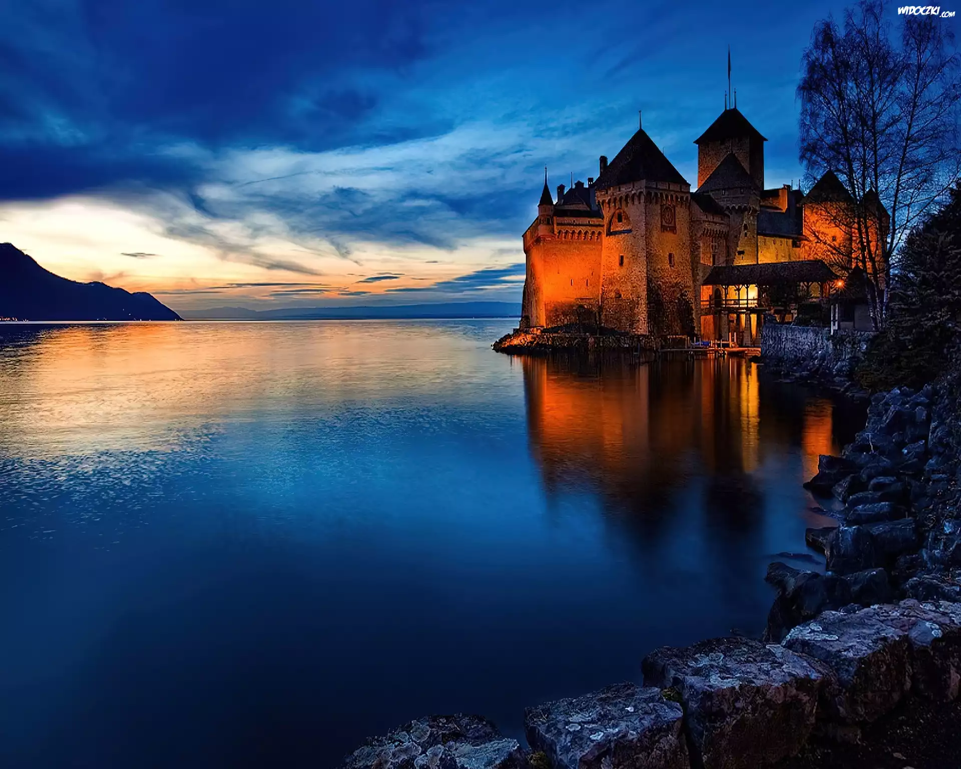 Zdjęcia, Zamek, Woda, Zachód, Słońca
