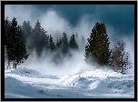 Zima, Droga, Drzewa, Zamieć, Grafika AI