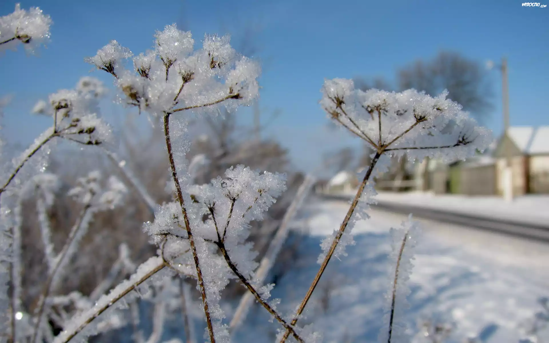 Zdjęcia, Zamrożone, Rośliny, Promieniste, Kwiatostany, Łodyżki