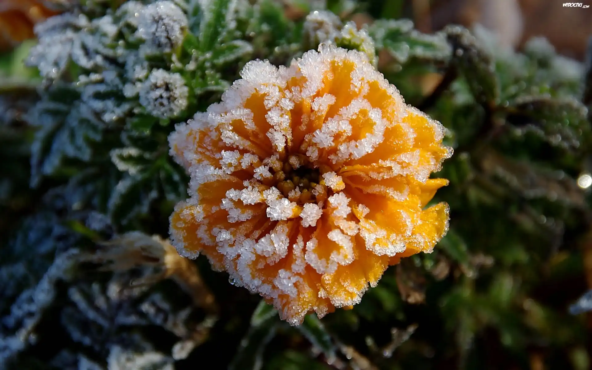 Zamrożony, Żółty, Kwiat, Liście