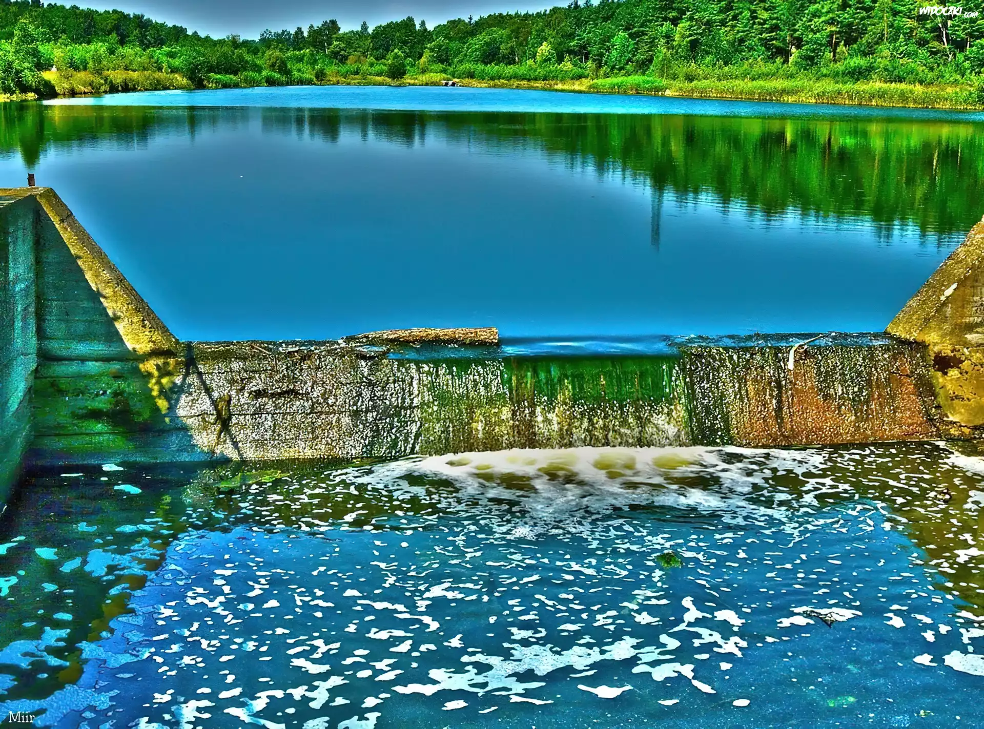 Zdjęcia, Rzeka, Zapora, Drzewa