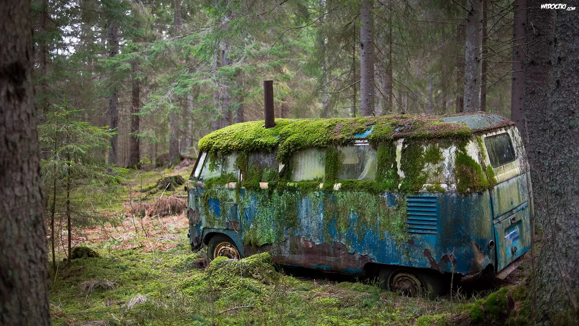 Zdjęcia, Zardzewiały, Samochód, Las, Mech