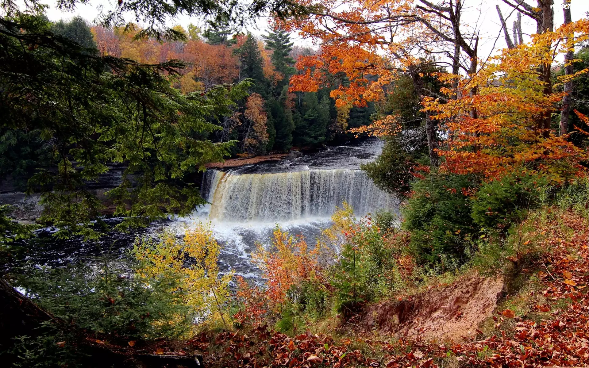 Jesień, Las, Ścieżka Wodospad Wodospad Wodospad Wodospady, Dżungla Jesień, Ławeczka, Las Góry, Wodospad Wodospad Młyn, Nad, Rzeką, Virginia Leśna, Rzeka, Zima Wodospad jesienią Widok, Lasu, Lot, Ptaka Wodospad, Kamienie, Mech Wodospad
