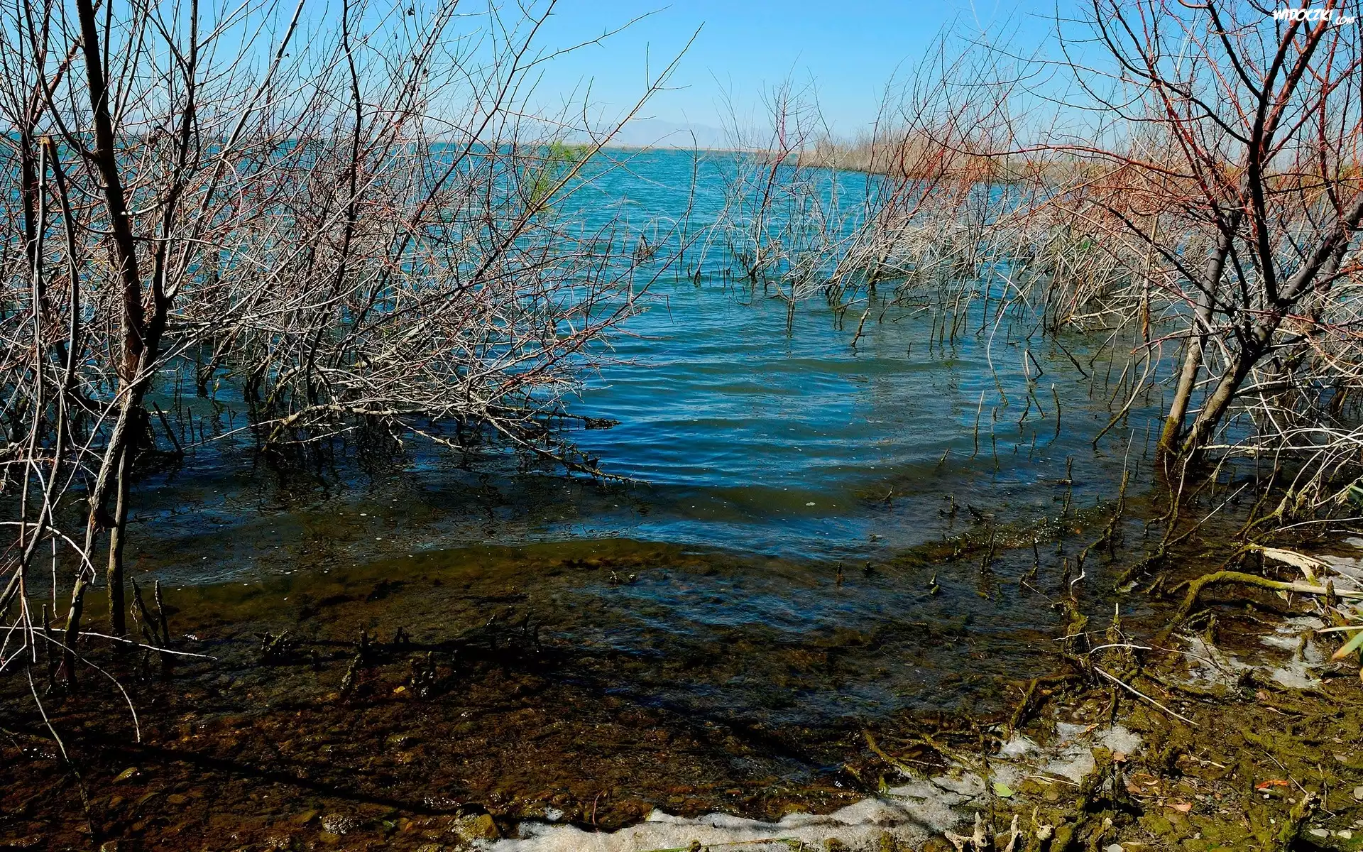 Zdjęcia, Jezioro, Zarośla, Drzewa