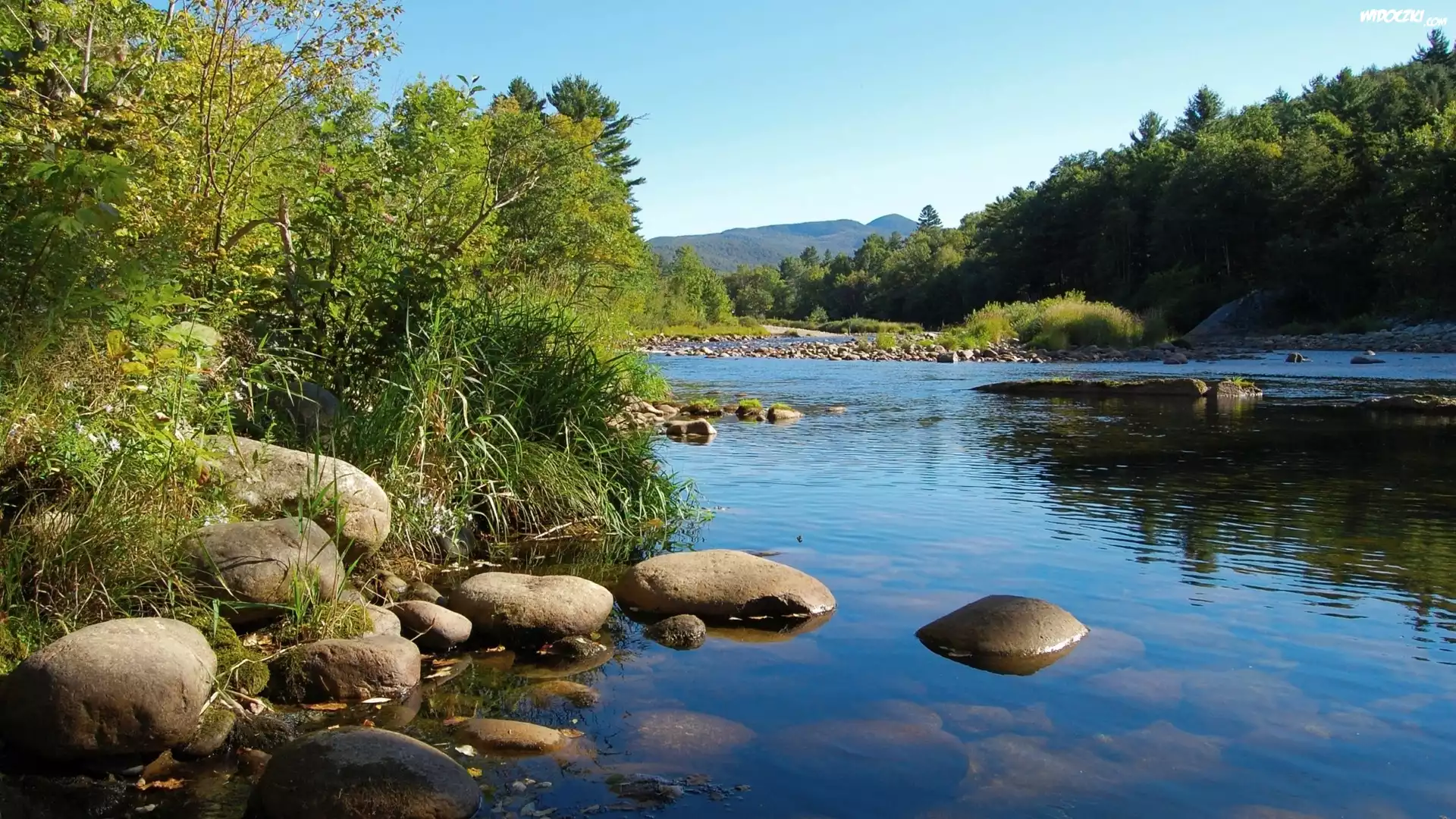 Rzeka, Zarośla, Kamienie