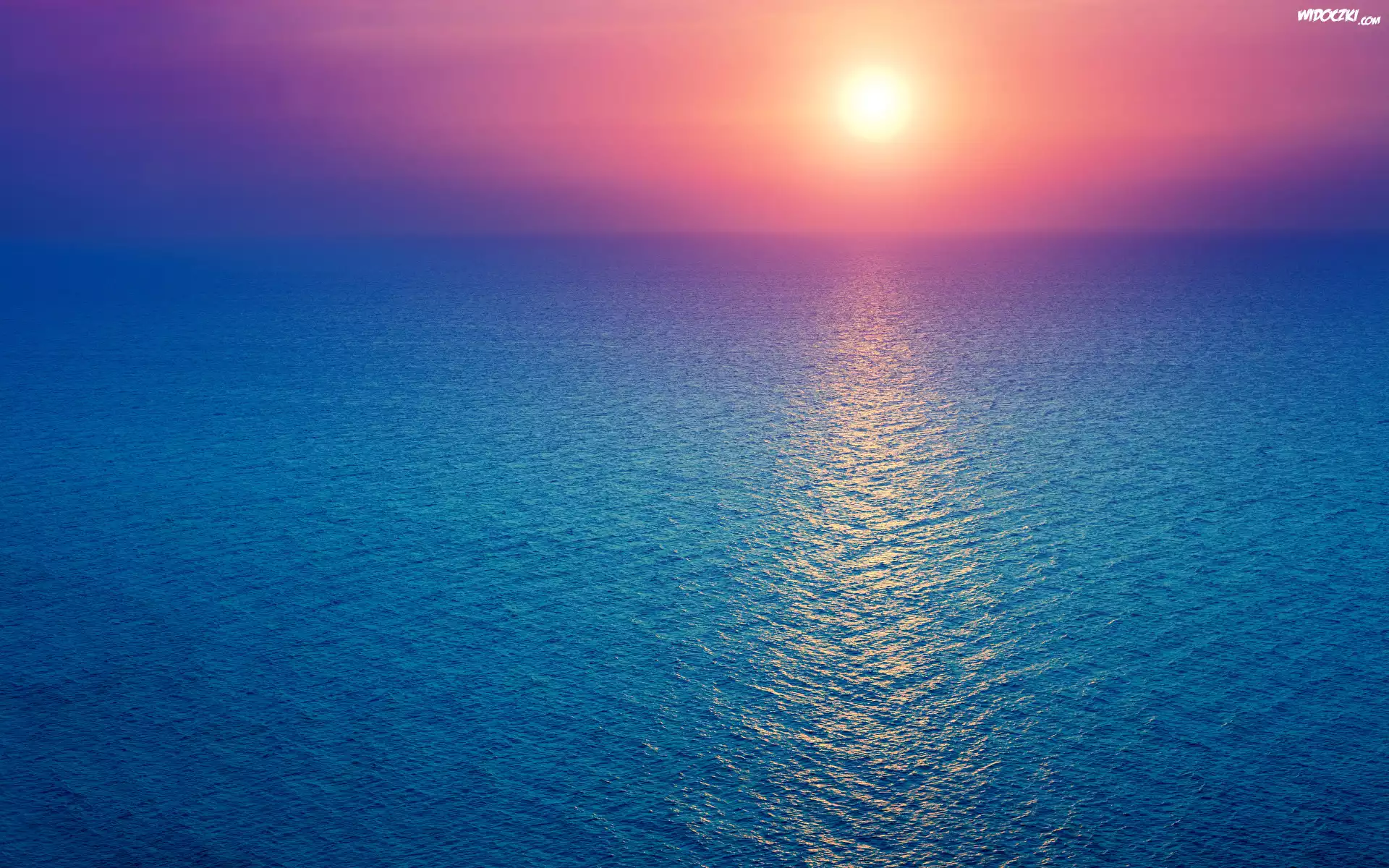 Morze, Zaróżowione, Niebo, Zachód słońca