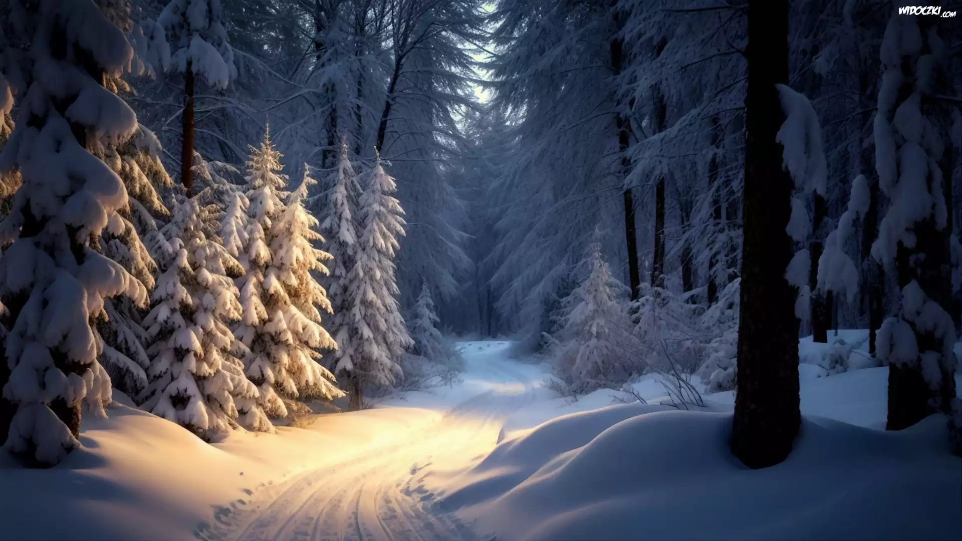 Zdjęcia, Zima, Las, Śnieg, Zaśnieżona, Droga, Drzewa