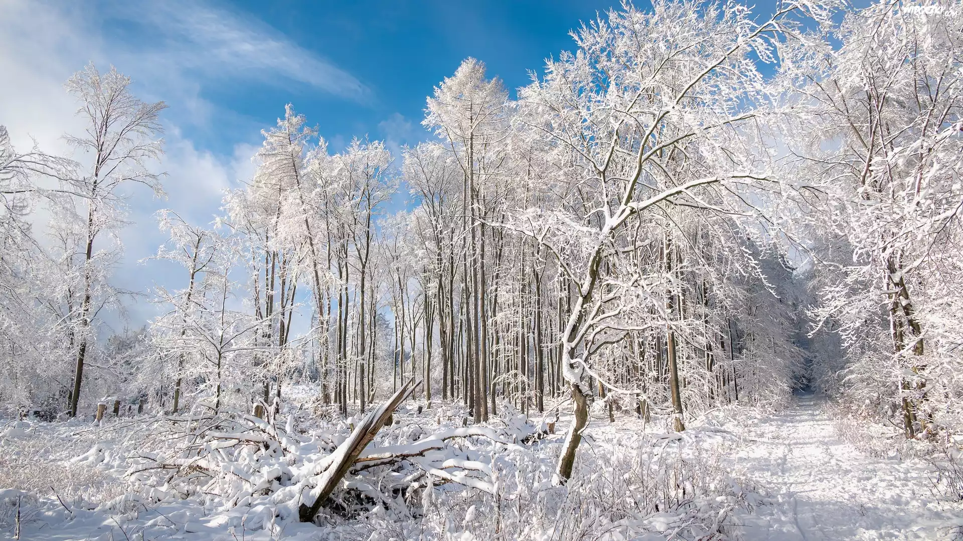 Zdjęcia, Zima, Ośnieżone, Drzewa, Zaśnieżona, Droga, Las
