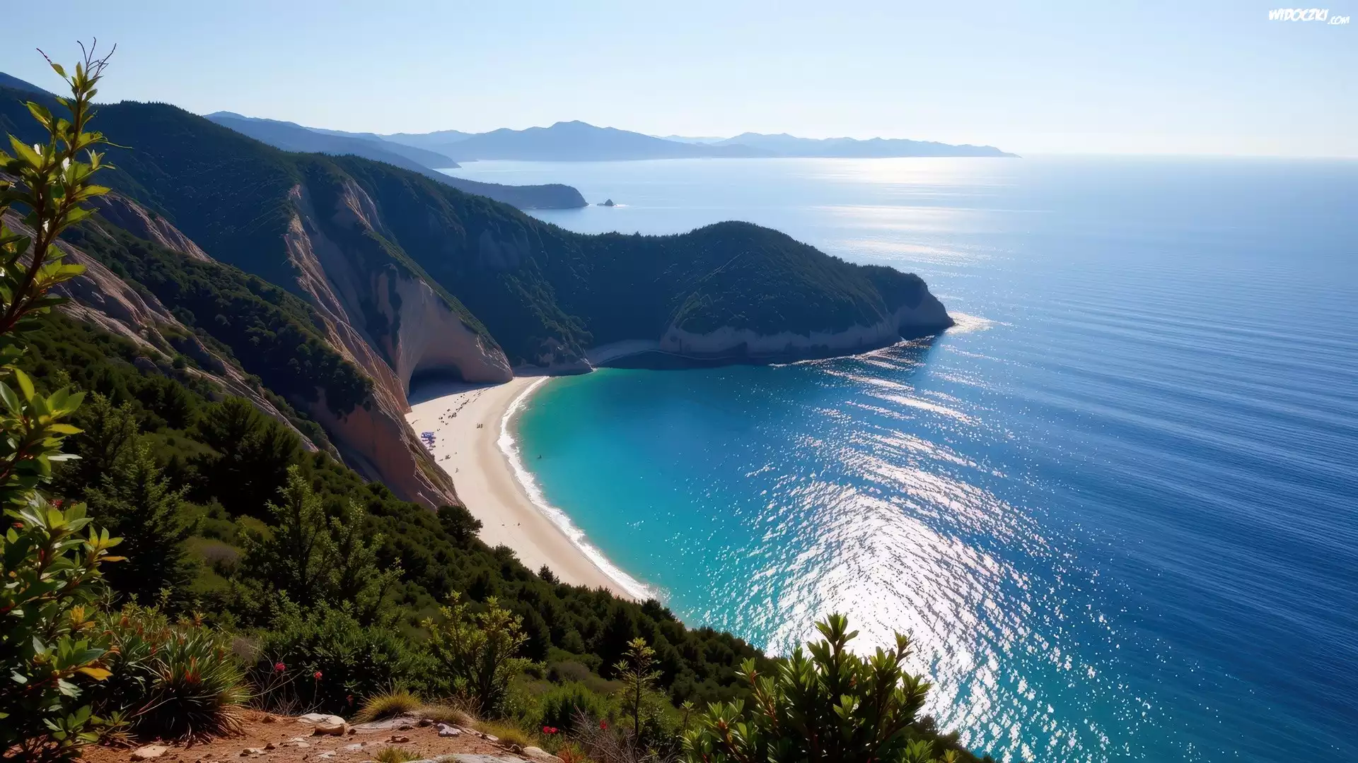 Zdjęcia, Morze, Zatoka, Plaża, Góry, Krzewy