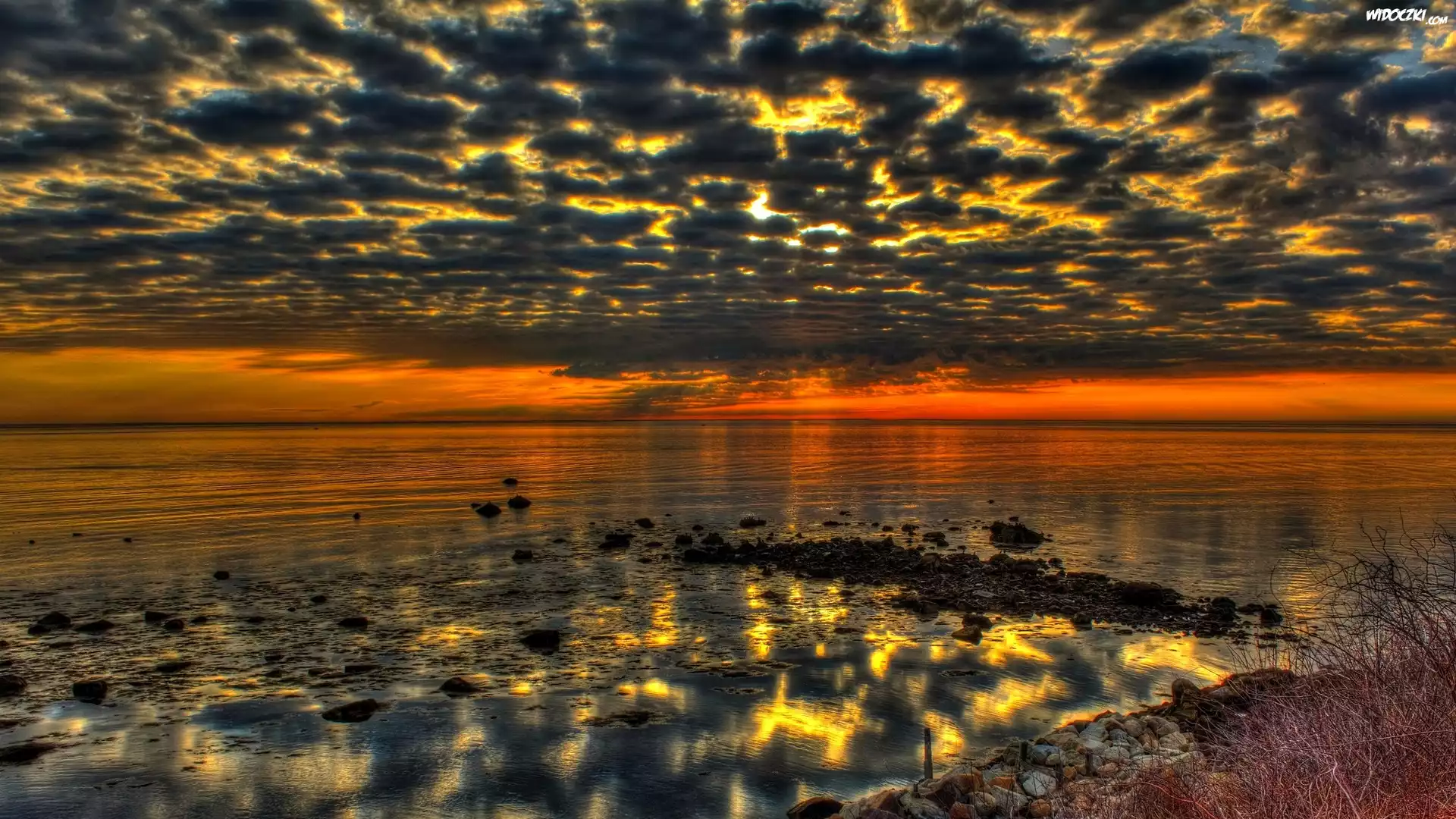Stany Zjednoczone, Stan Massachusetts, Zatoka Cape Cod Bay, Morze, Zachód słońca, Niebo, Chmury, Odbicie |