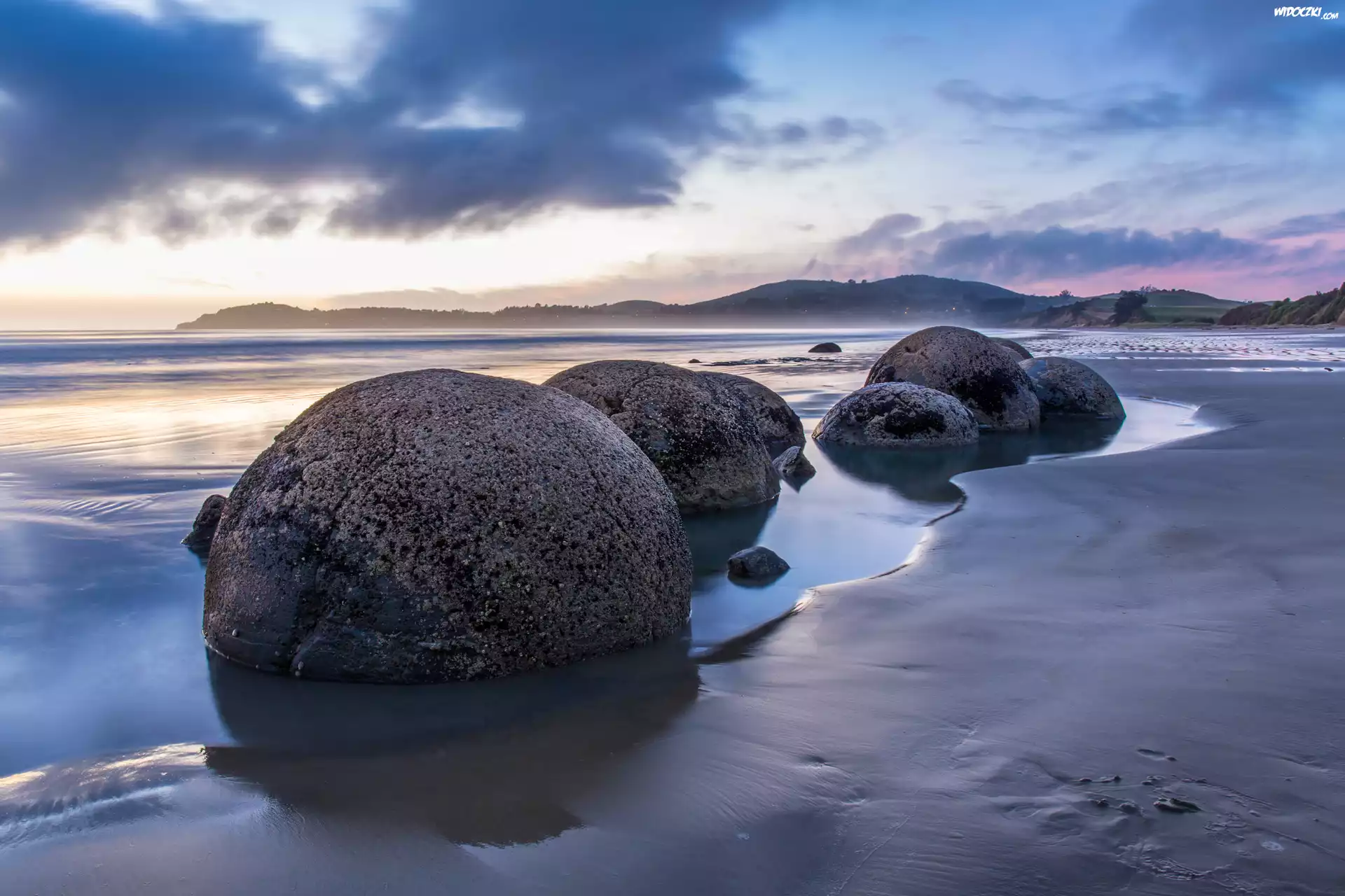 Zdjęcia, Zatoka Waikawau Bay, Wybrzeże, Kamienie, Głazy, Region Waikato, Nowa Zelandia