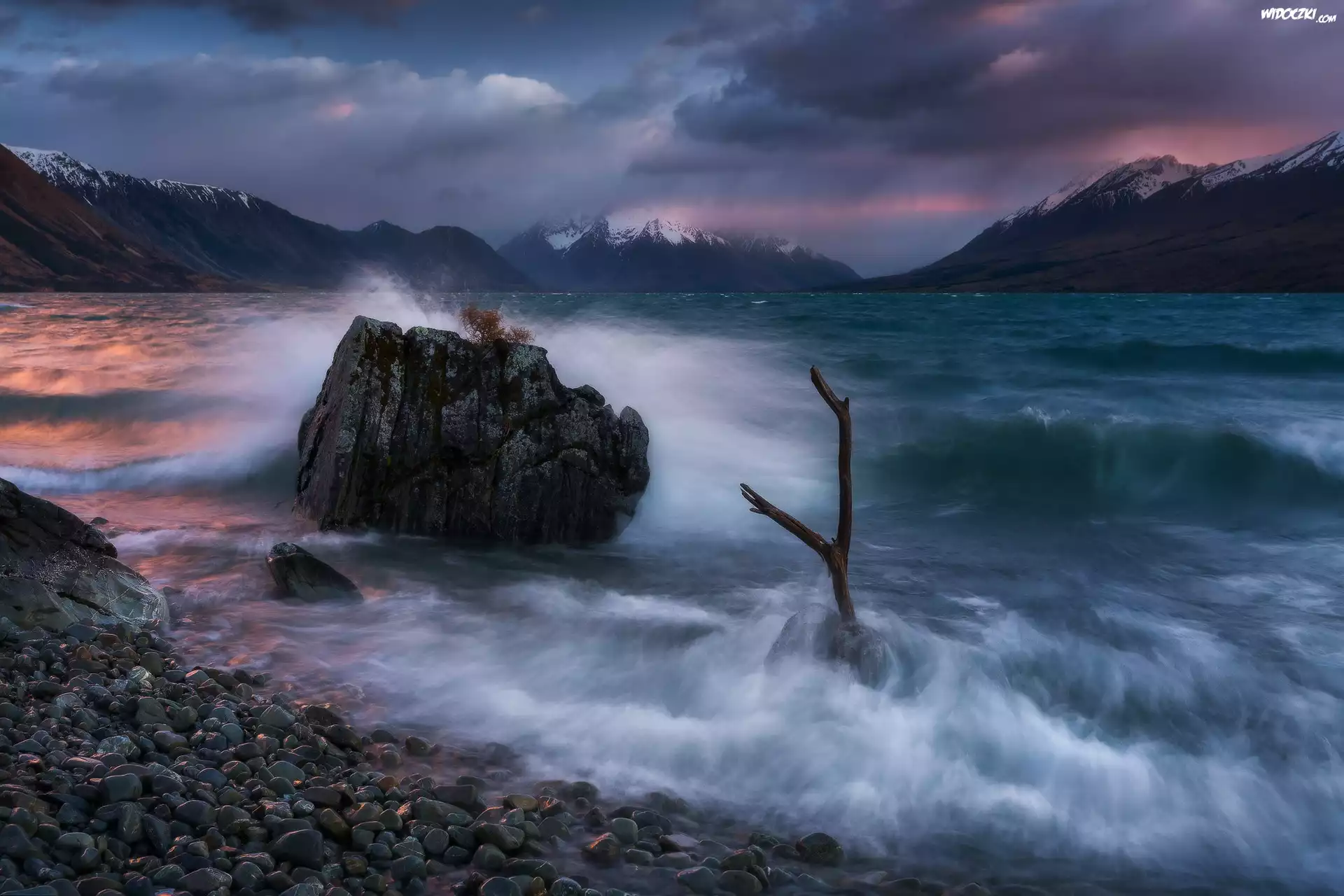 Zdjęcia, Nowa Zelandia, Wyspa Południowa, Jezioro Ohau, Góry, Kamienie