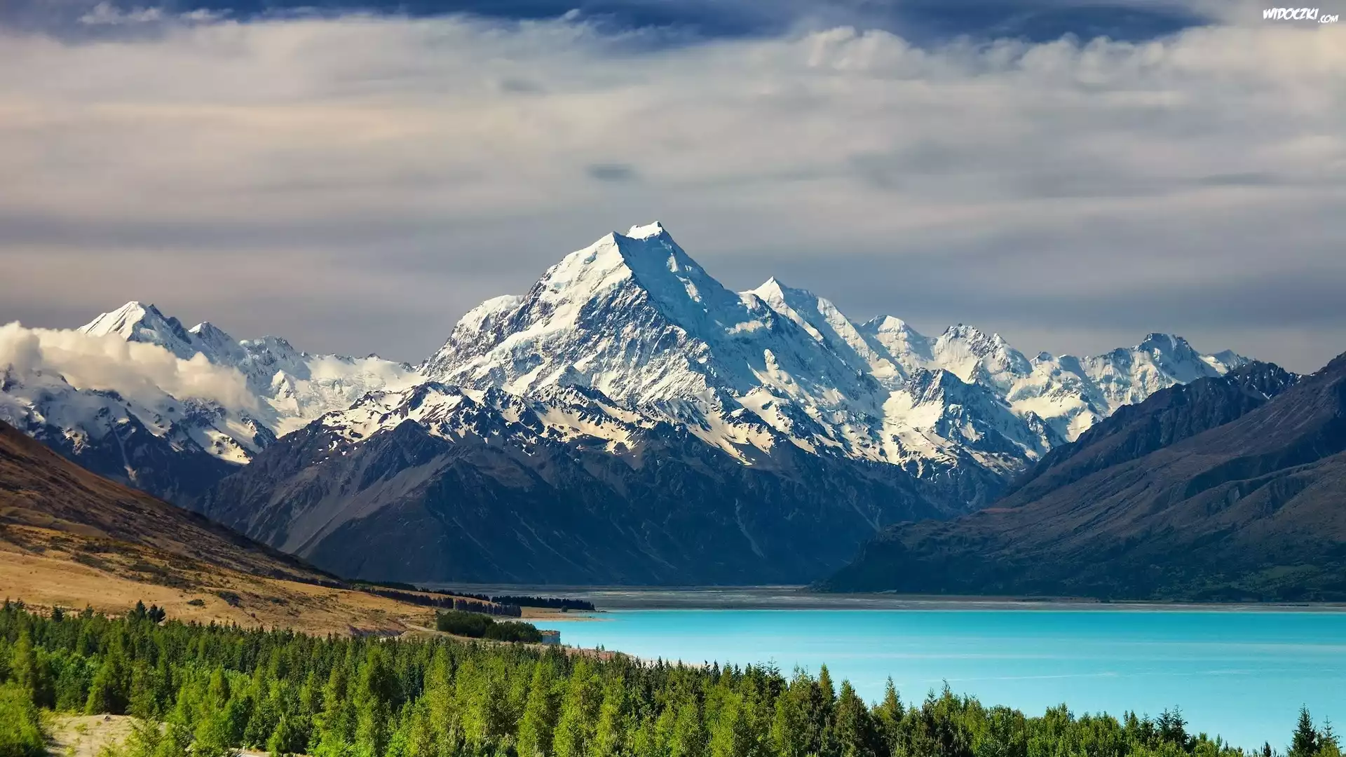 Zdjęcia, Nowa, Zelandia, Góra, Cooka, Jezioro, Pukaki, Las