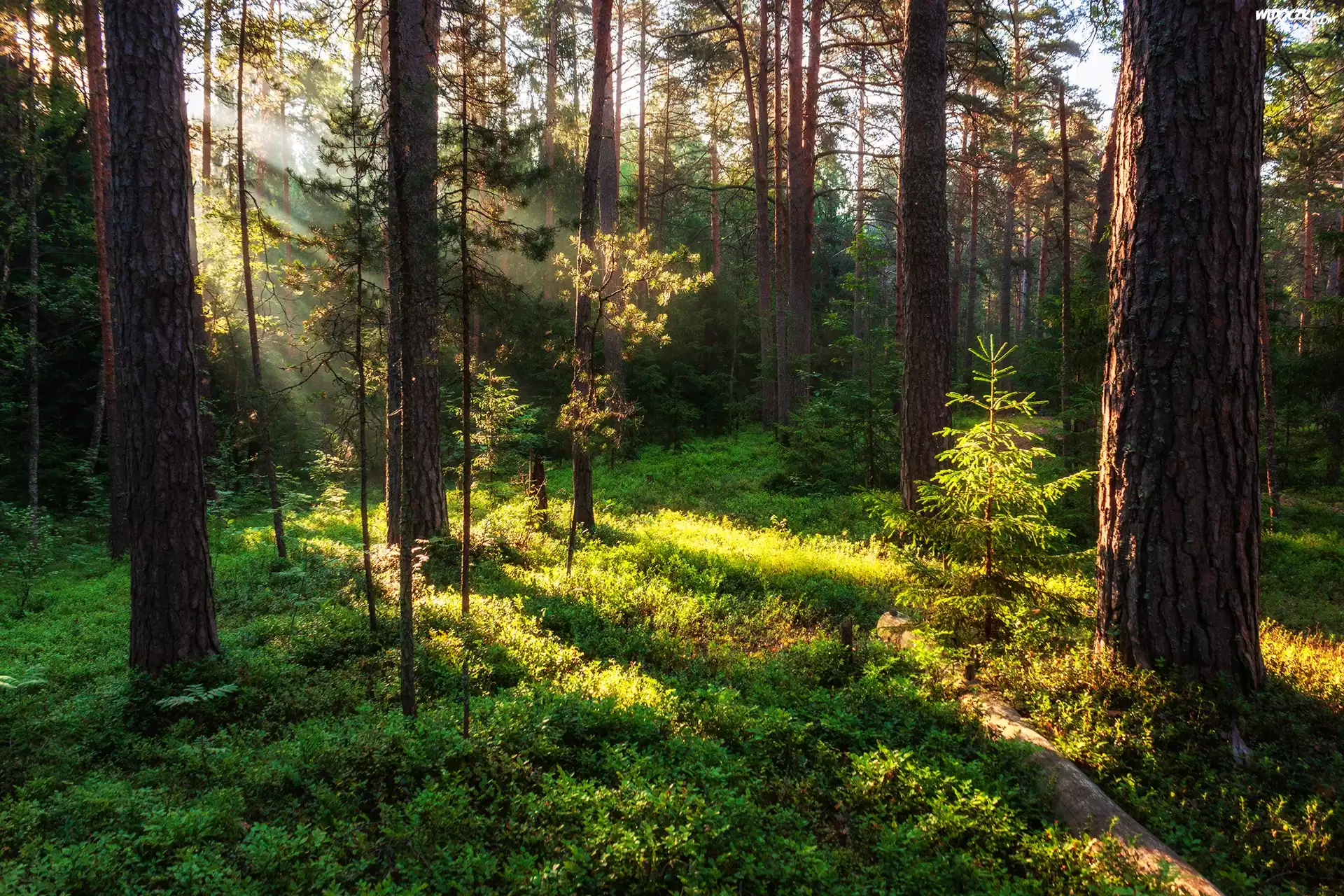 Las, Drzewa, Rośliny, Zieleń, Przebijające światło