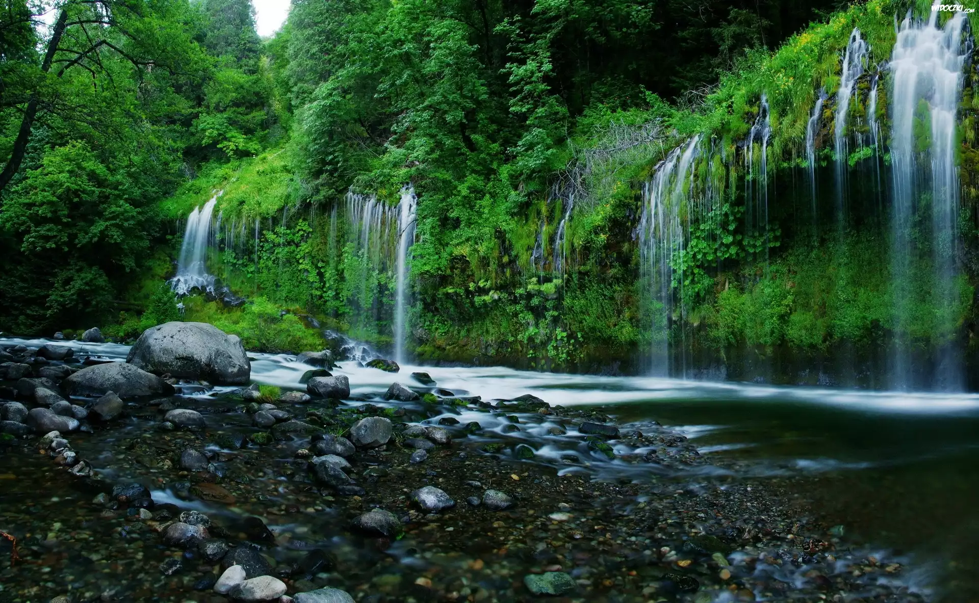 Wodospad, Zieleń, Kamienie