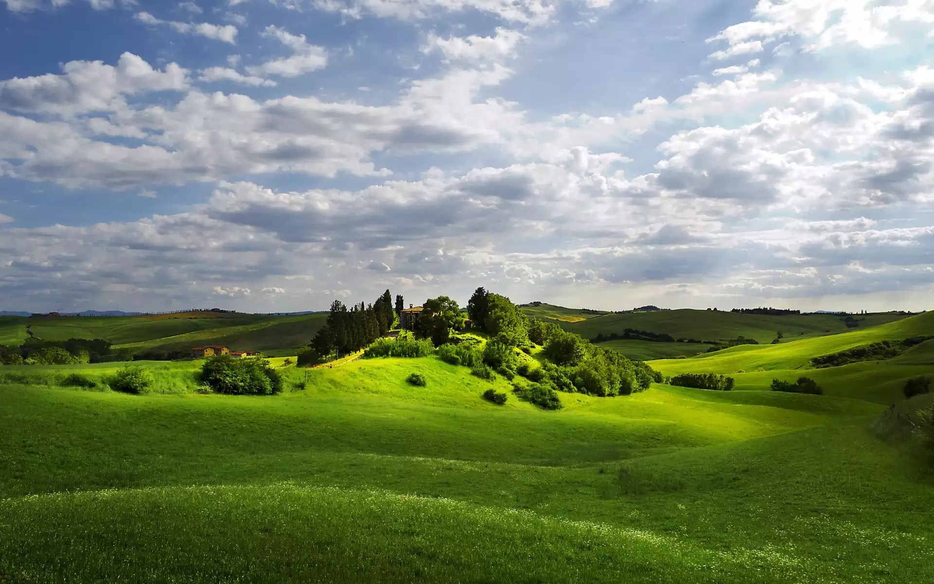 Zdjęcia, Zielone, Łąki, Białe, Chmurki