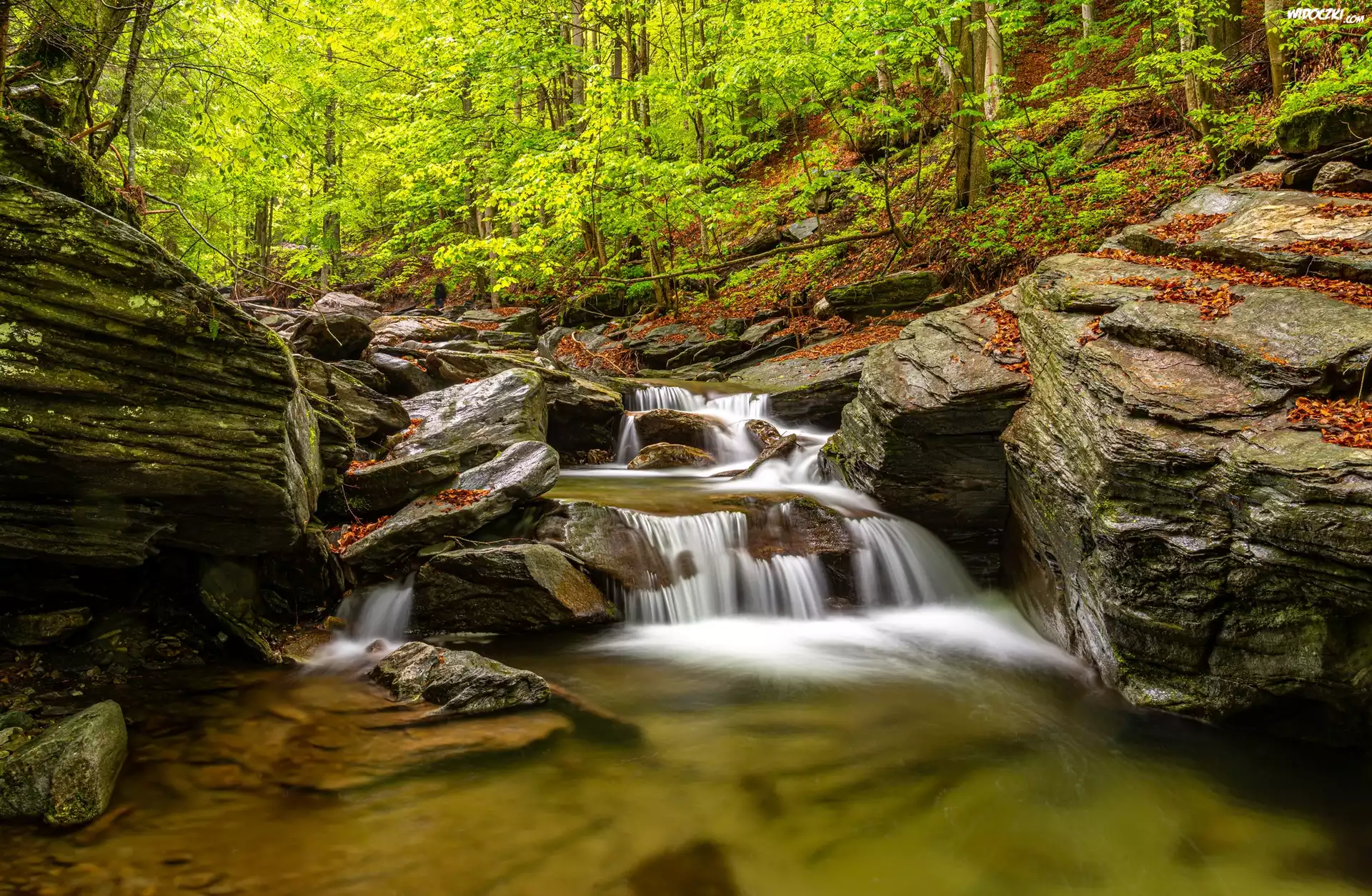 Zdjęcia, Las, Zielone, Drzewa, Rzeka, Skały
