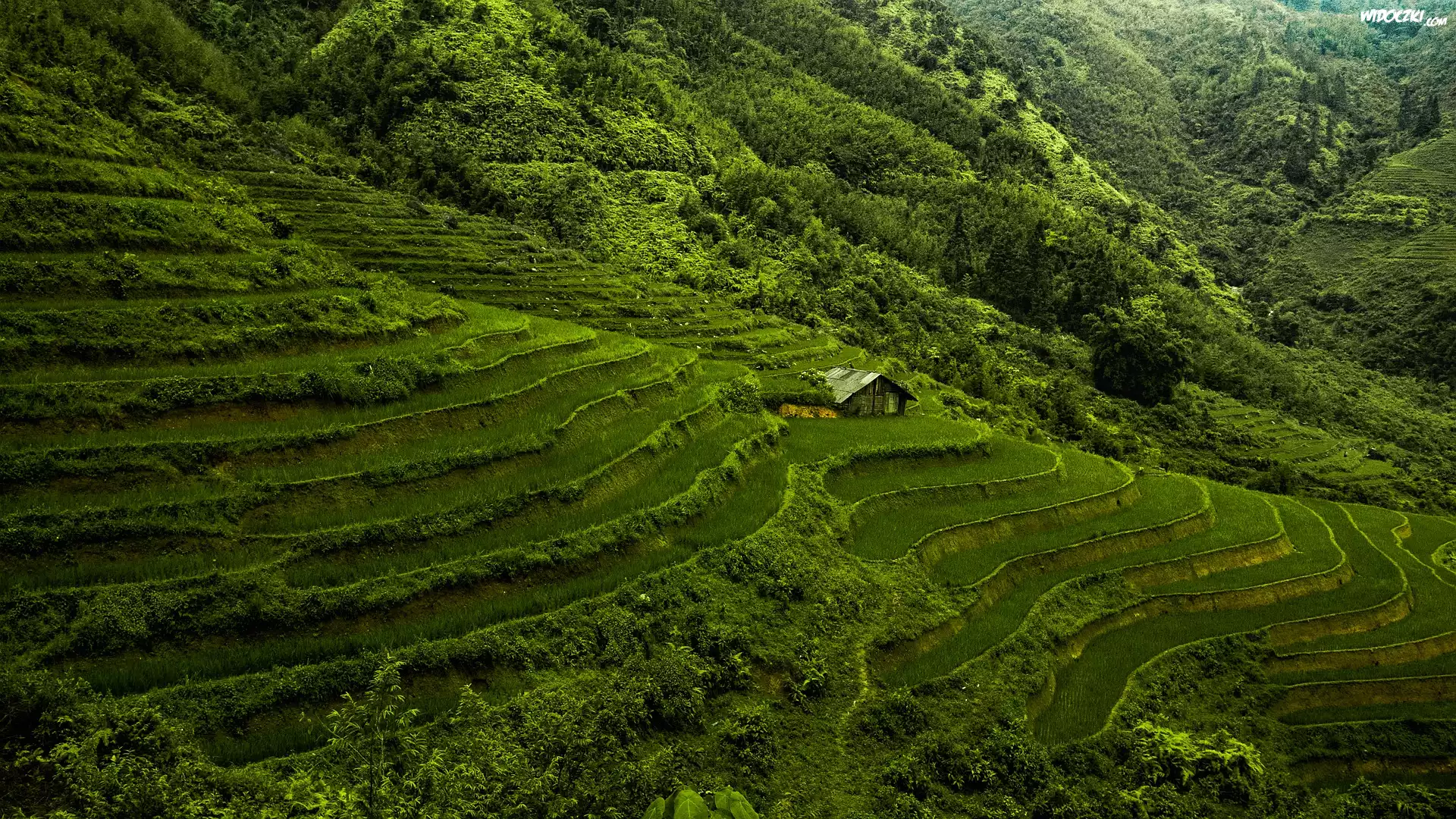 Zielone, Pola, Tarasy ryżowe, Góry, Wietnam