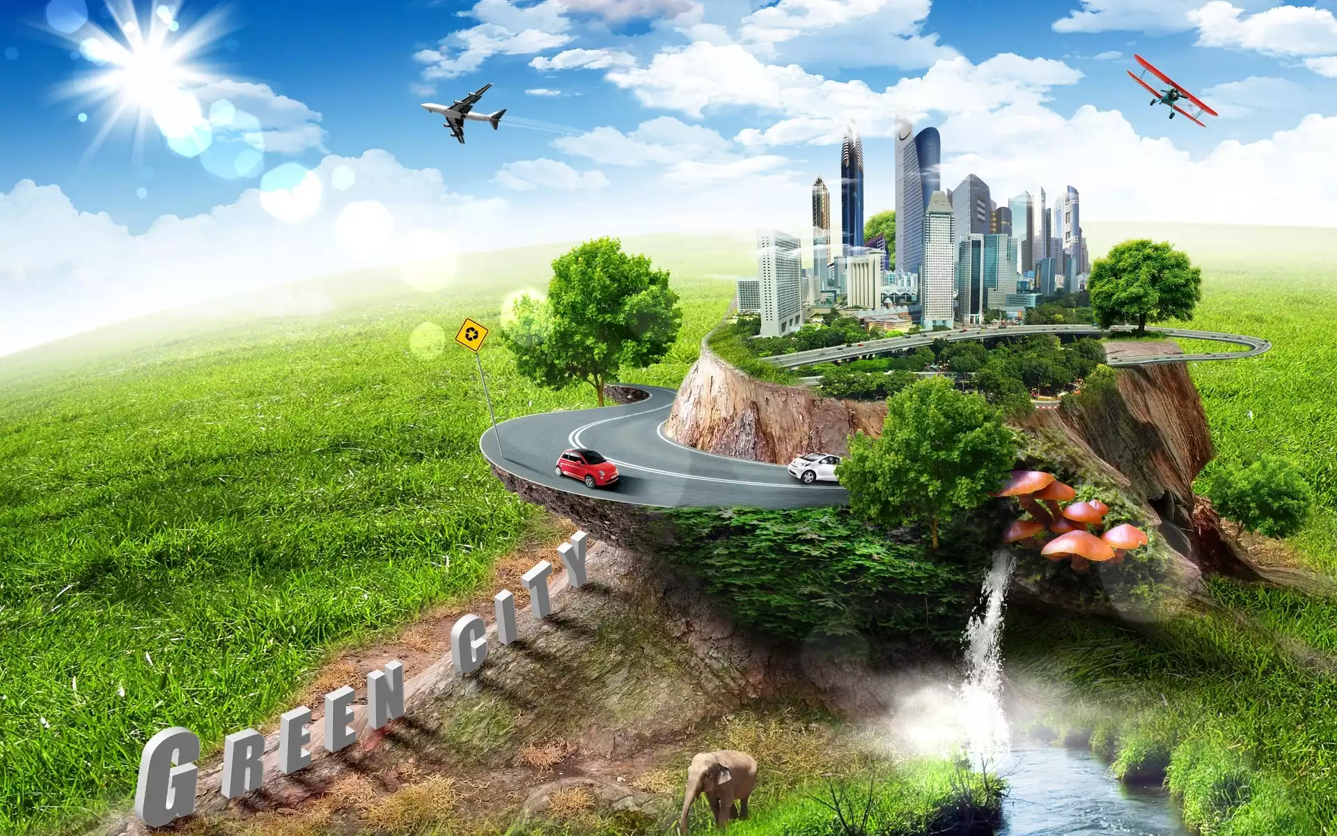 Zielone, Osiedle, Droga, Samoloty, Grzyby, Drzewa
