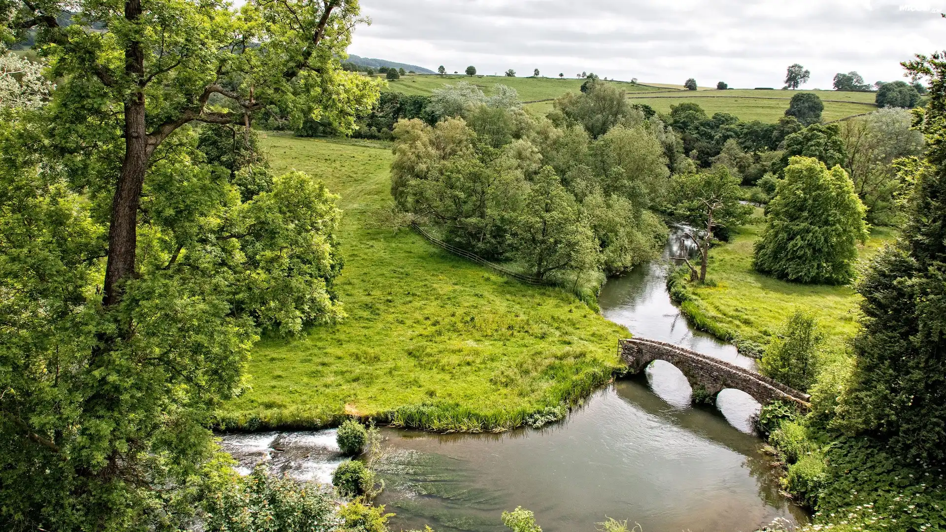 Zdjęcia, Zielone, Drzewa, Kamienny, Most, Rzeka