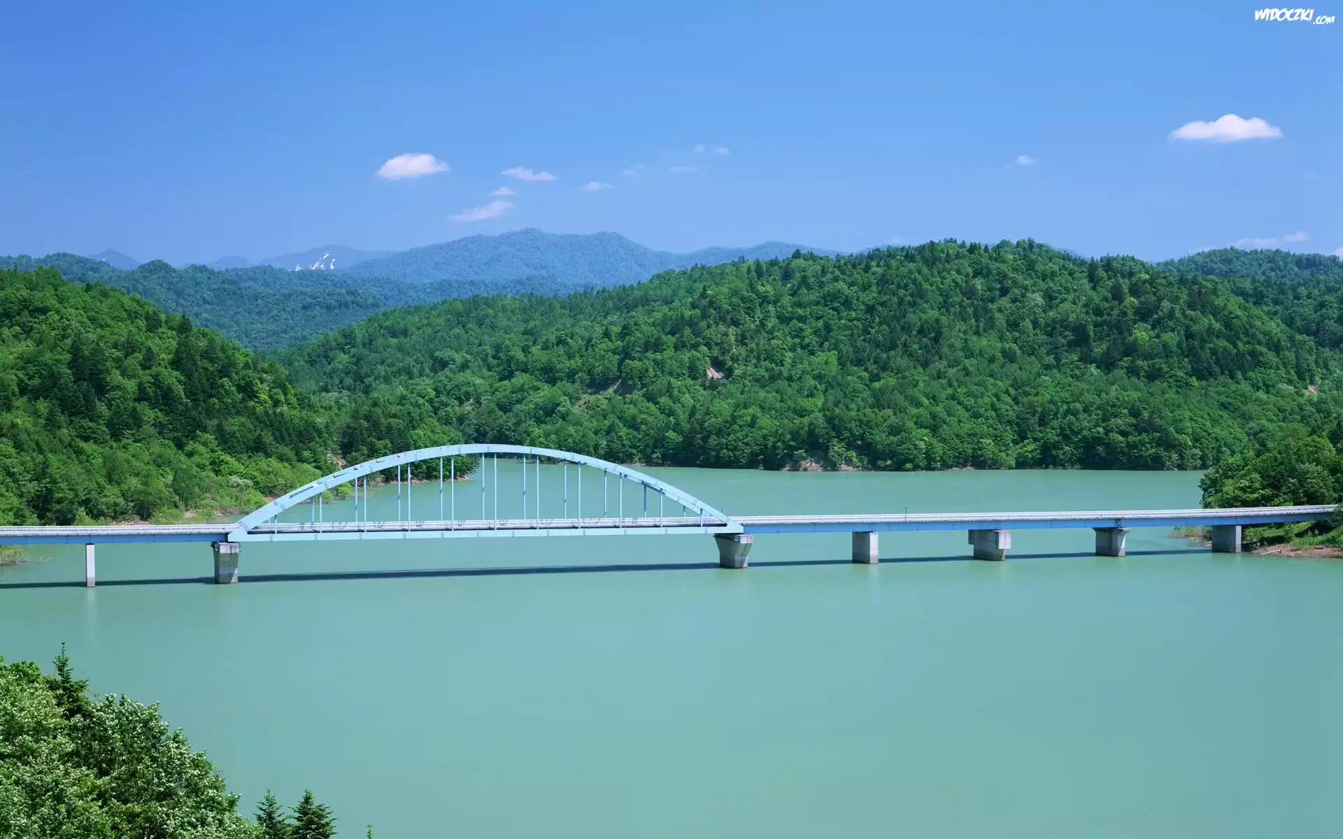 Zdjęcia, Zielone, Wzgórza, Rzeka, Most