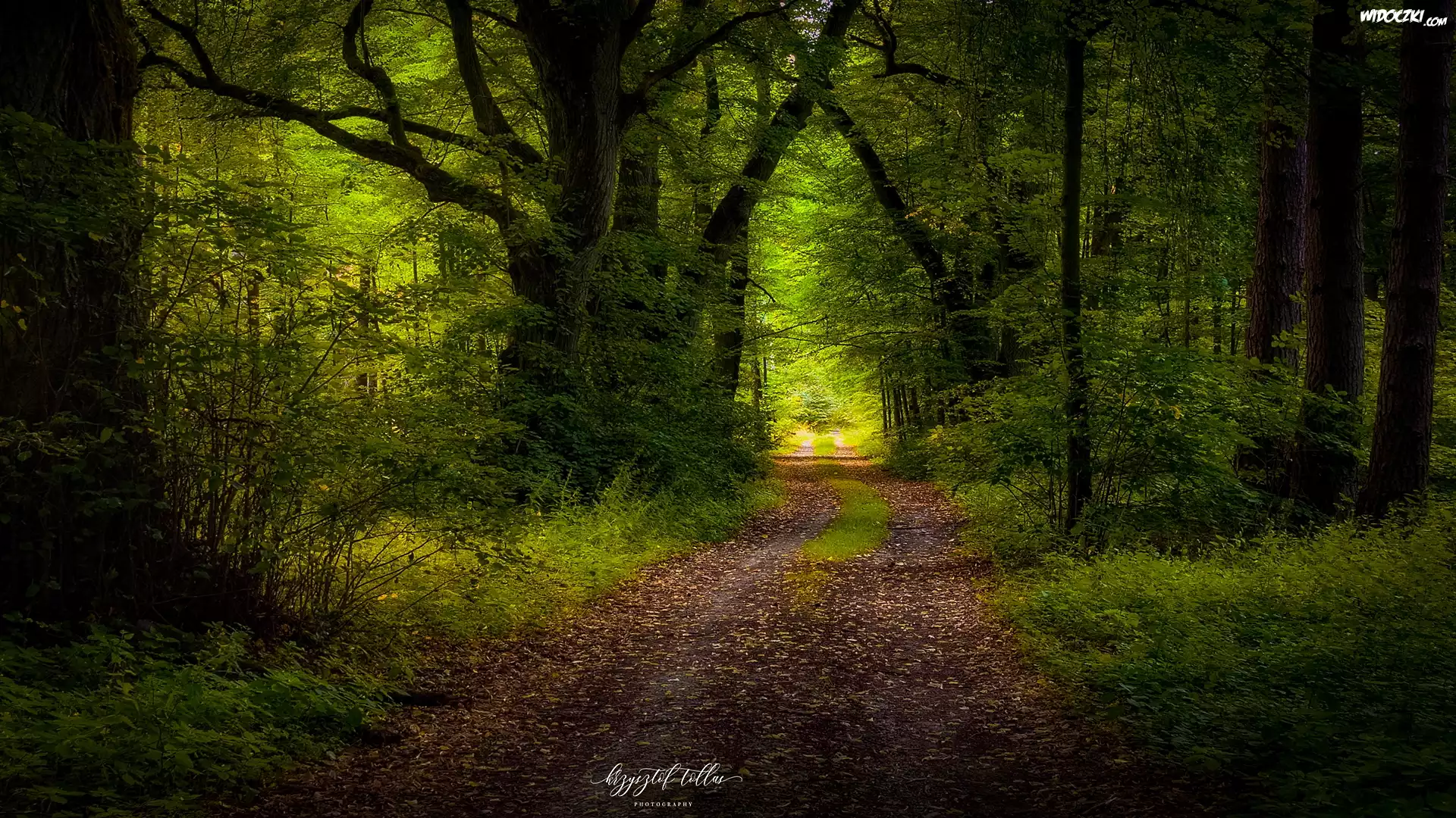 Zdj臋cia, Zielony, Las, Drzewa, Droga, Lato